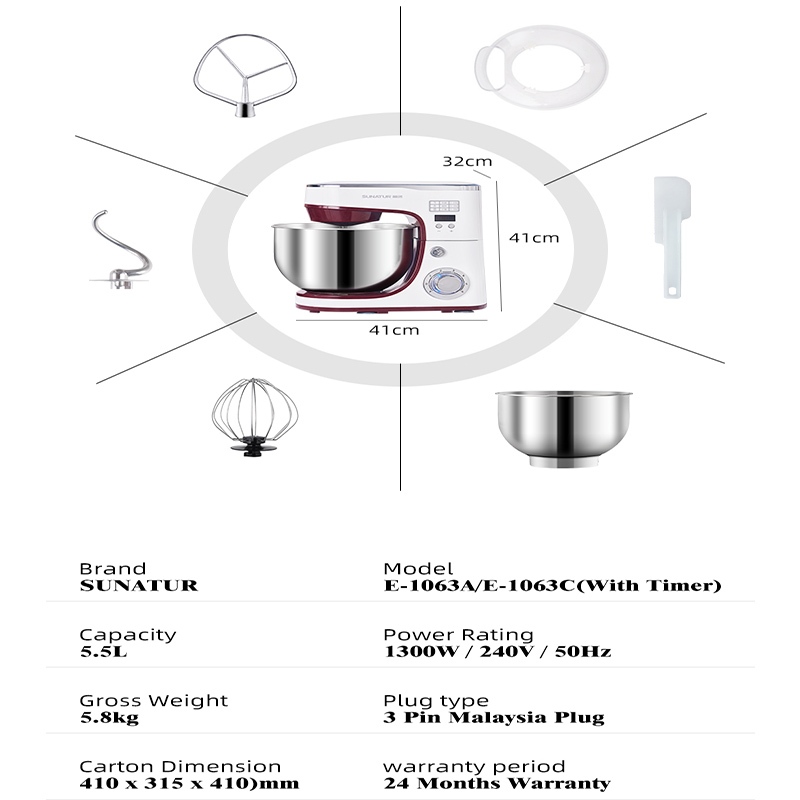 SUNATUR 1063 Stand Mixer 1300W 5.5L Automatic Dough Mixer for Home & Commercial Use Philippines