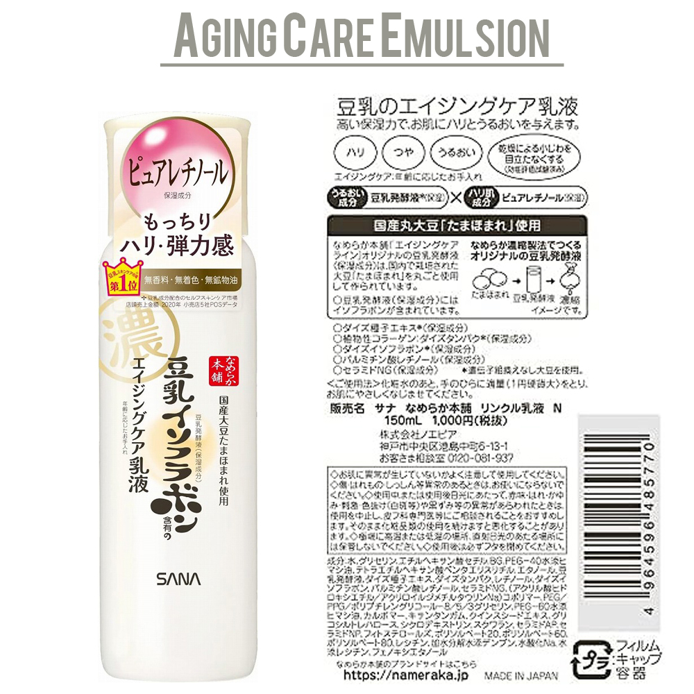 [Anti aging Care / Made in JAPAN] SANA Nameraka Honpo Wrinkle Lotion / Emulsion / Face mask 20sheets / Moisturising Soy milk isoflavones Pure retinol Moisturiser