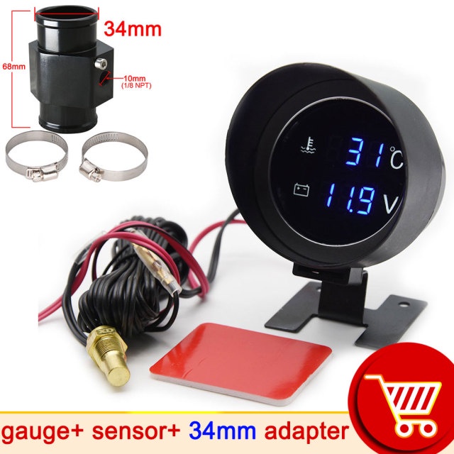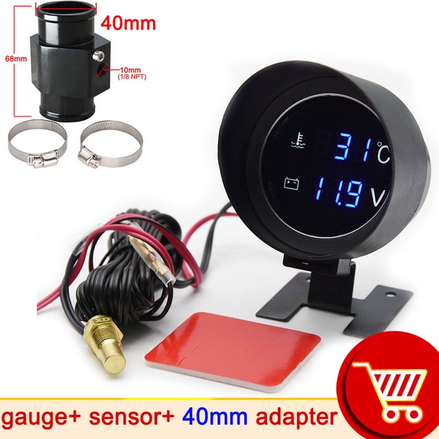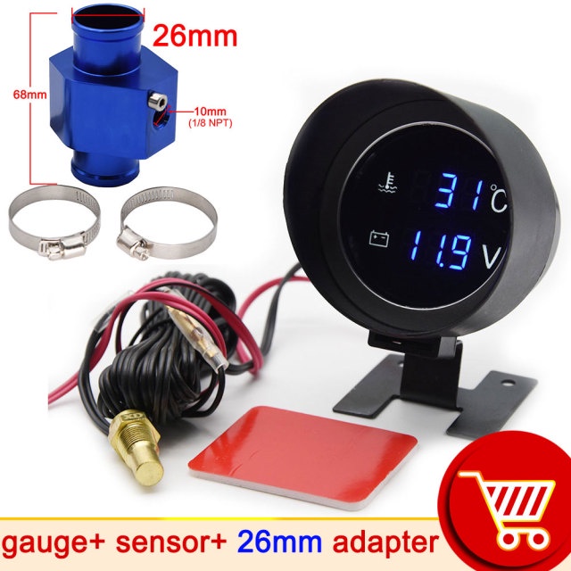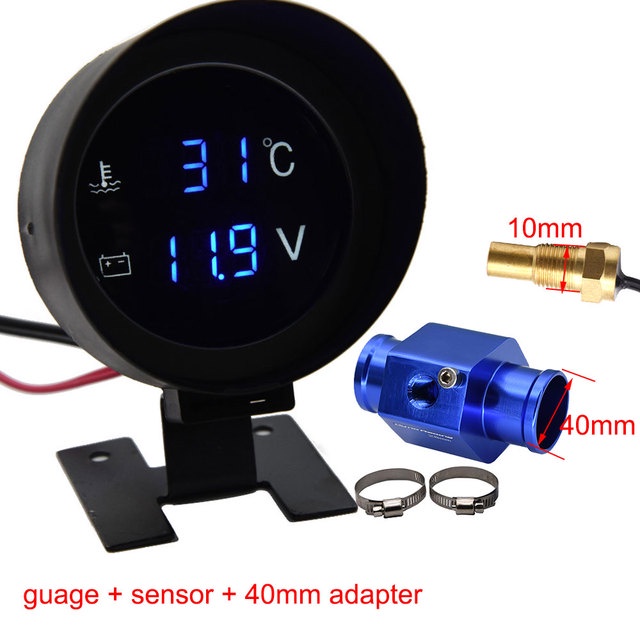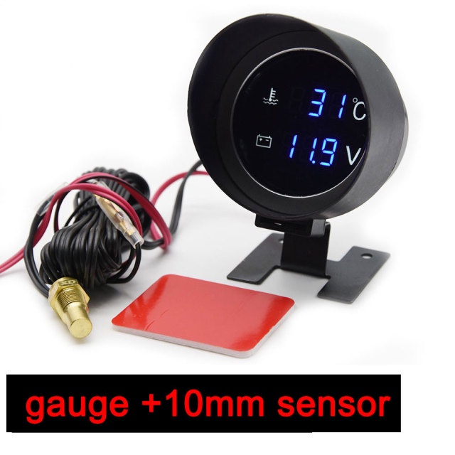 H Car Digital Led Water Temperature Gauge -10-110 Celsius With Water Temp Joint Pipe Sensor 10MM Adapter 1/8NPT Voltmeter 2 IN 1