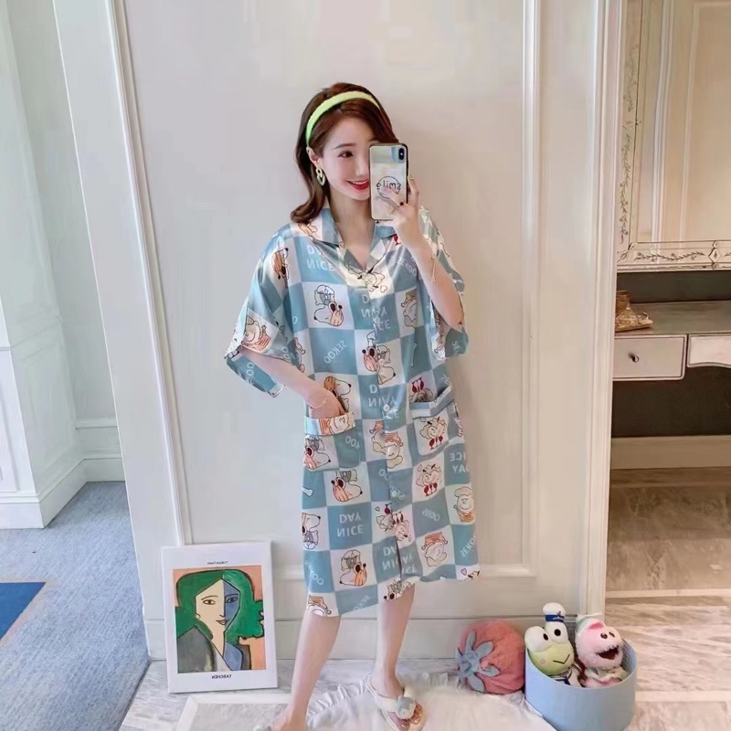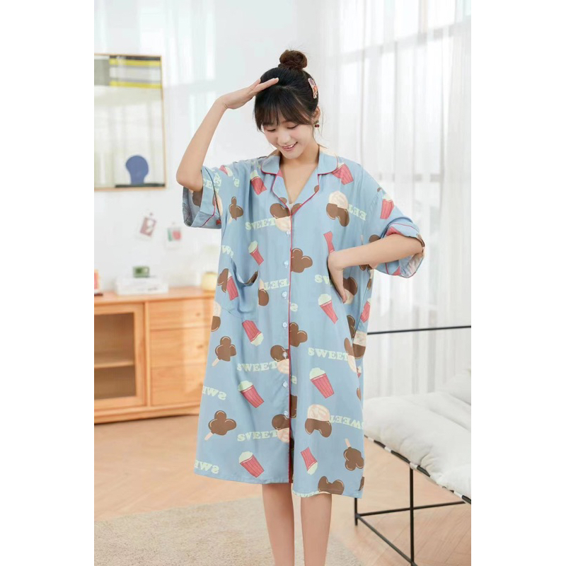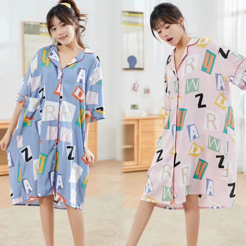 challis cotton big size fit up 2xl short sleeve sleepwear daster/dress home service