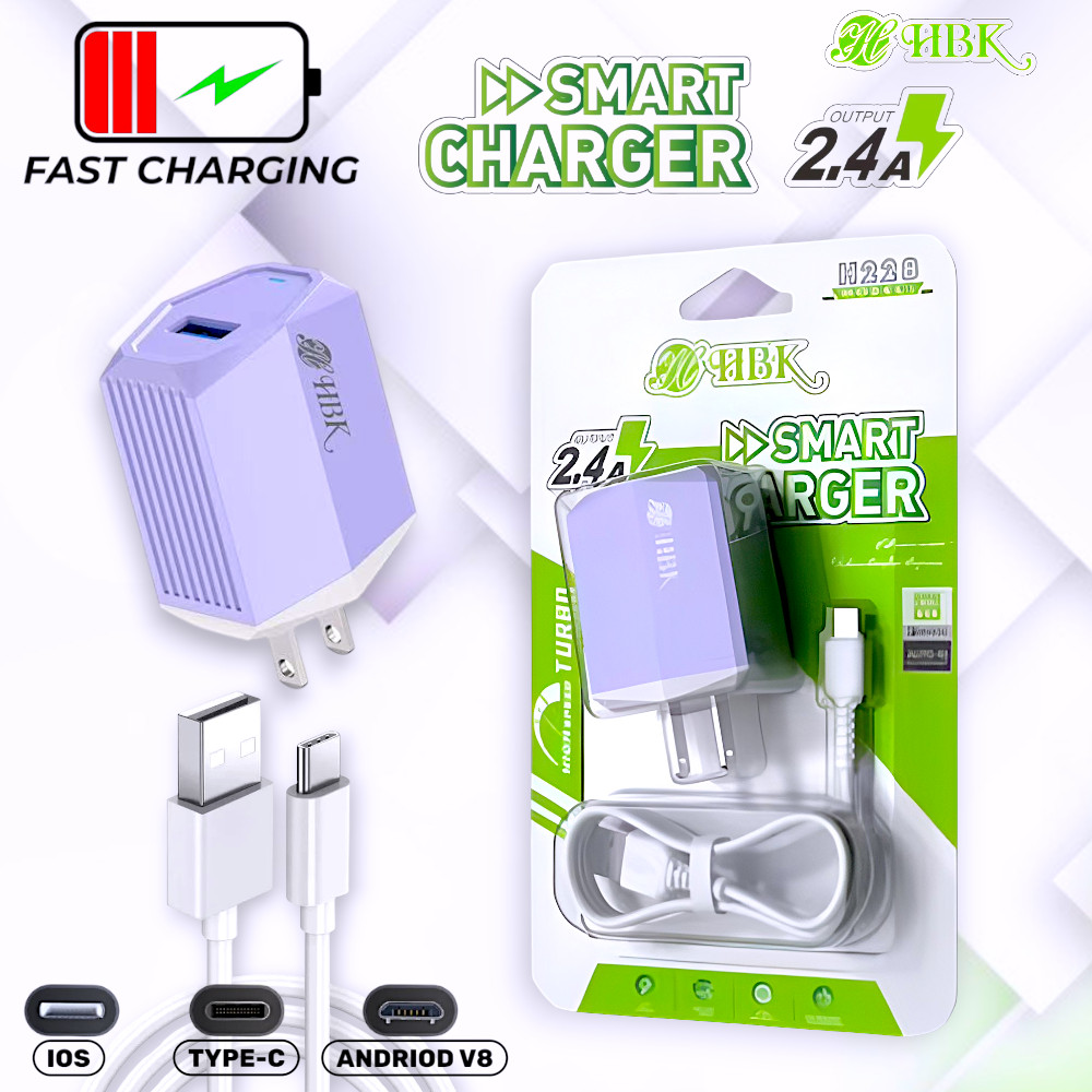 H228 Macaron Mobile Android V8 Type C iOS 2.4A Fast Charger iOS Color And Design Travel Charger