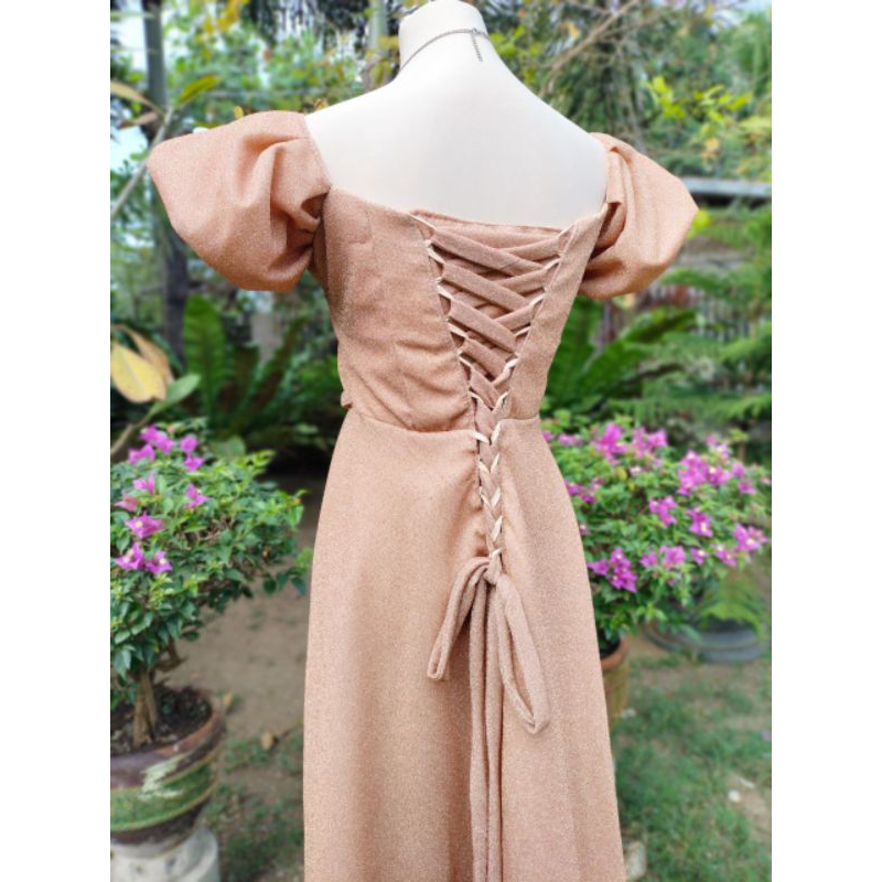HABLON Elegant JS Prom Dress Mother Ninang Sponsor Wedding Puff sleeve Peach