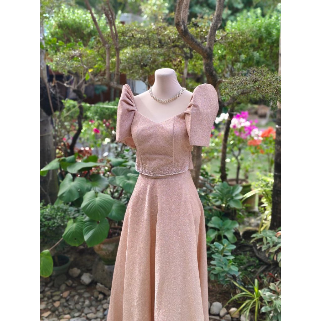 HABLON Elegant Modern Filipiniana Crop top Blouse and Skirt Terno Graduation Oathtaking Formal Event