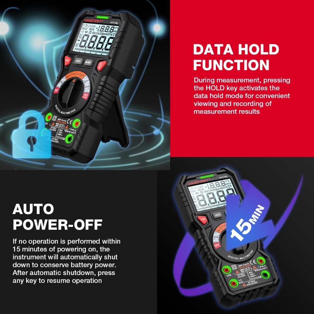 HABOTEST HT118L Digital Multimeter AC/DC 6000 Counts Resistance Measurement Capacitance Tester NCV Non Contact Voltage Detestion Shock Resistant Rubber Protective Case