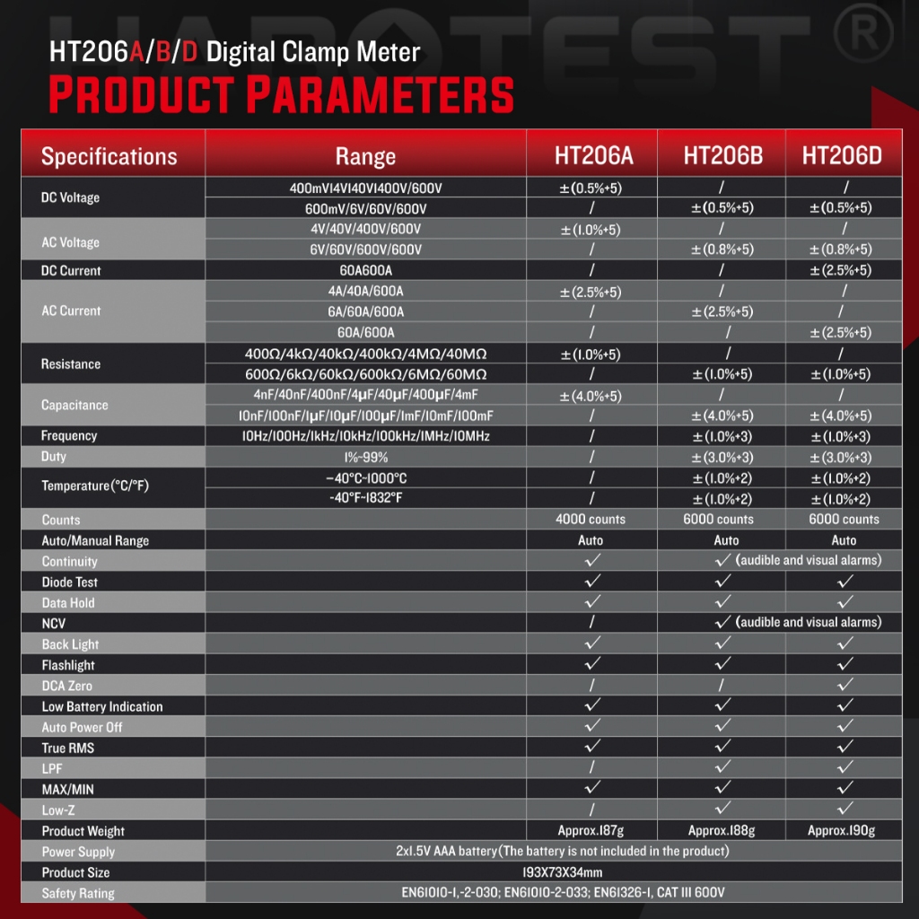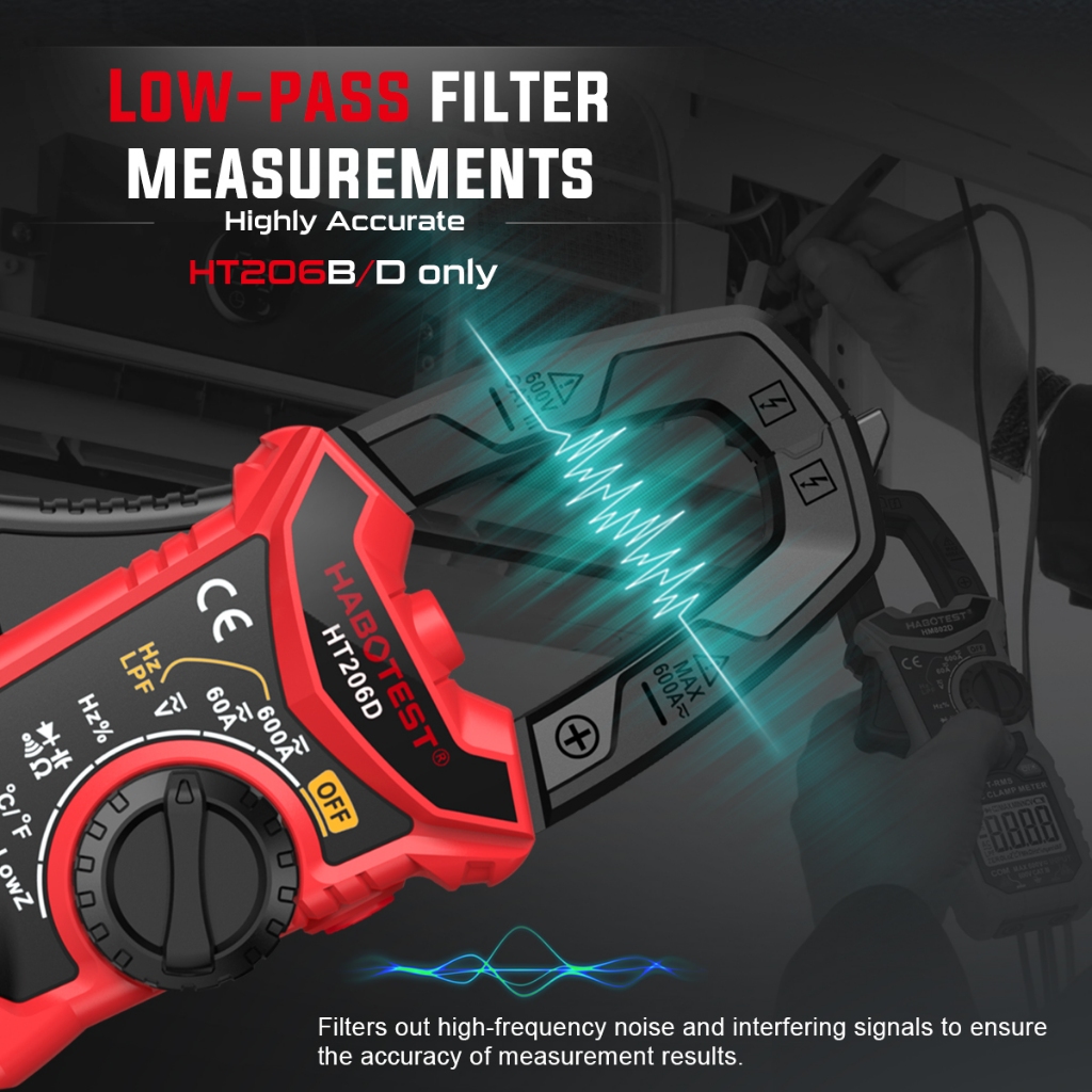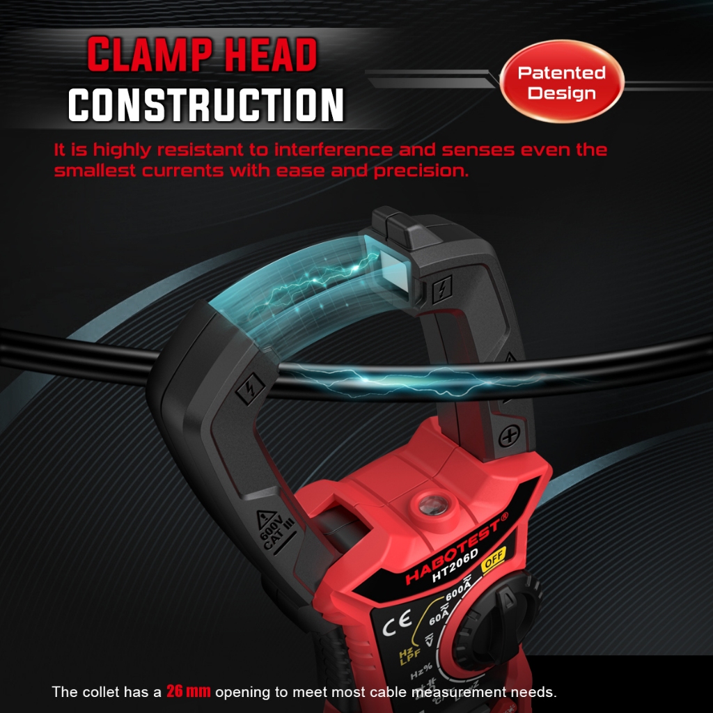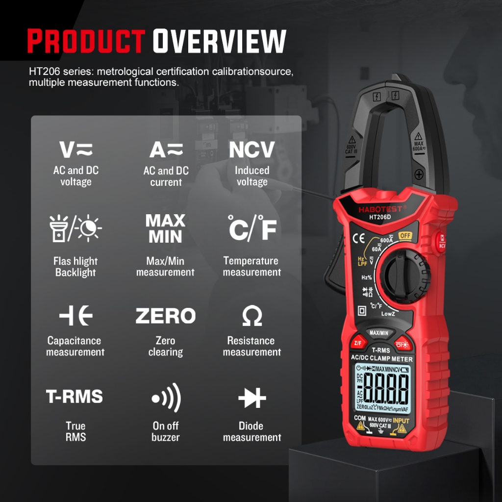 HABOTEST HT206 Digital Clamp Meter 600V AC/DC 6000 Counts Current Auto Range Multimeter 600A Ammeter Voltage Tester Ohm Continuity Hz