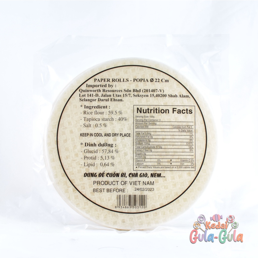 HALAL Rice Paper SAIZ BESAR 300g 23cm Spring Rolls Kulit Popia Vietnam