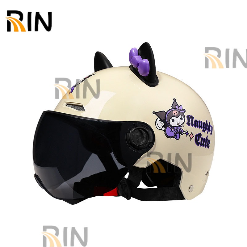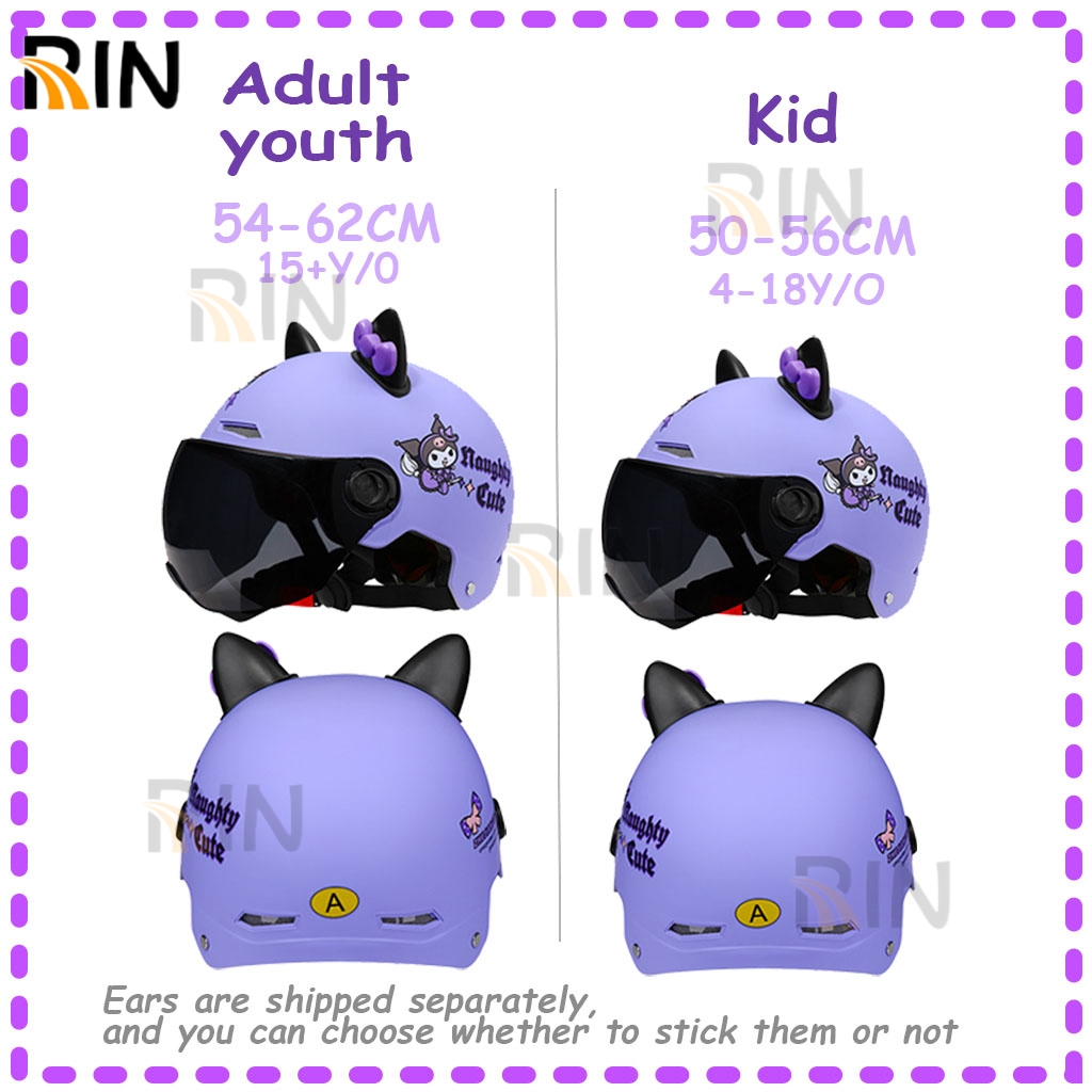 HALF Face Helmet For Kids Parent-Child Helmet Motorcycle Cute Kuromi Cartoon Pattern With Visor Ears