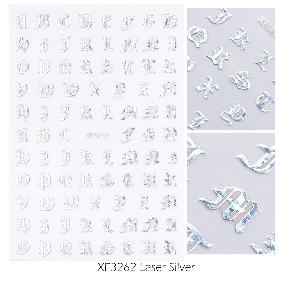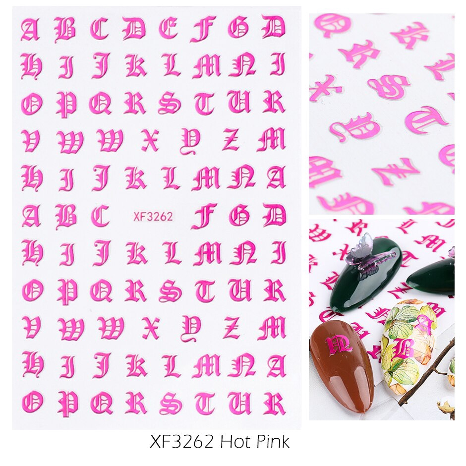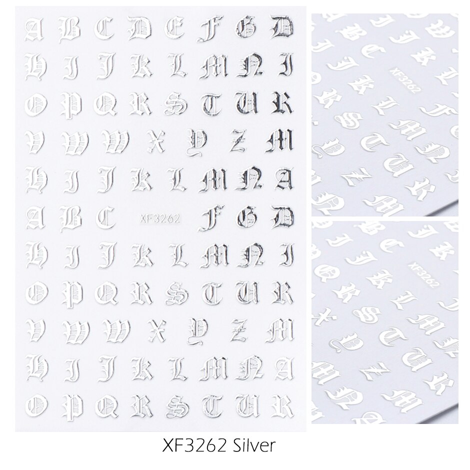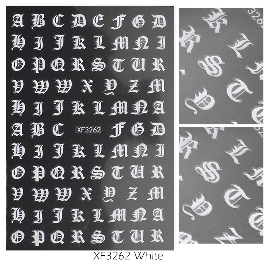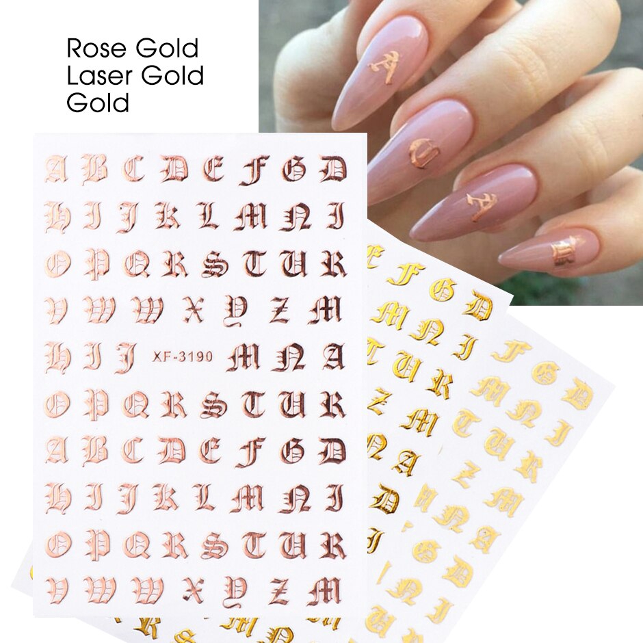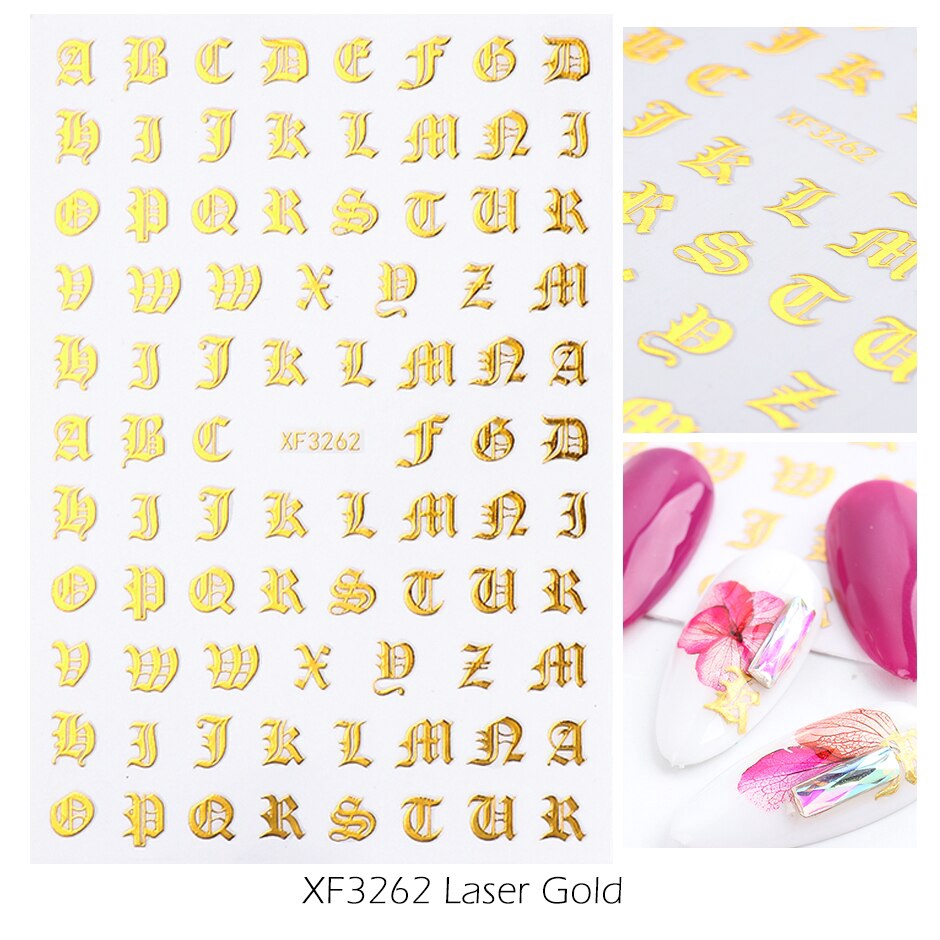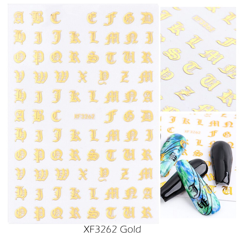 HAMA NAIL 3D Nail Art Stickers Gothic Letter Black Gold Cool Design Alphabet Adhesive Slider Nail Inscription Manicure Decoration