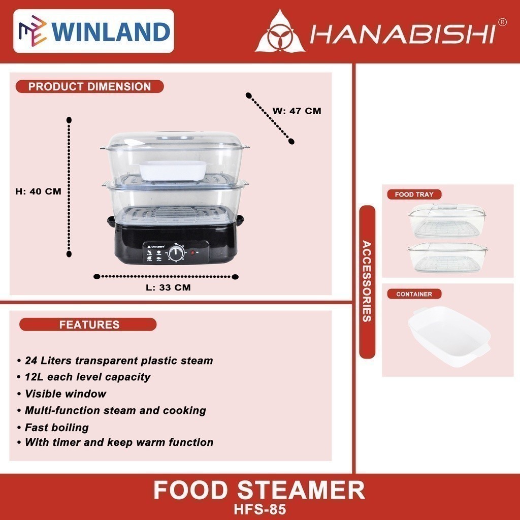 Hanabishi by Winland 2-Level Transparent & Collapsible Steamer Trays Electric Food Steamer HFS-85