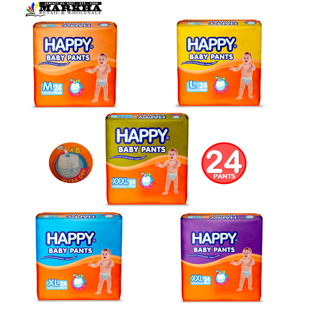 HAPPY BABY PANTS DIAPER x24+3pcs ( MEDIUM - XXXL)