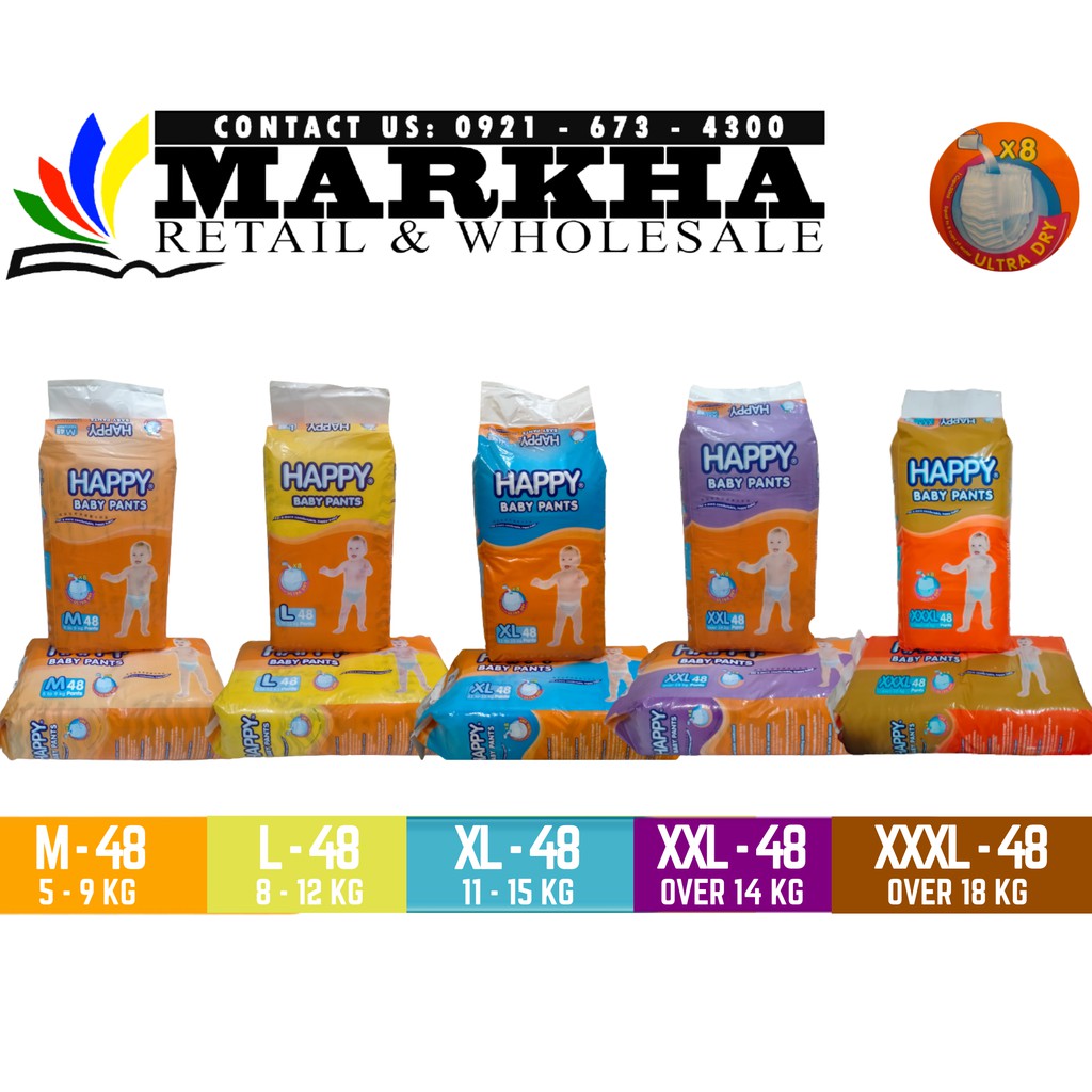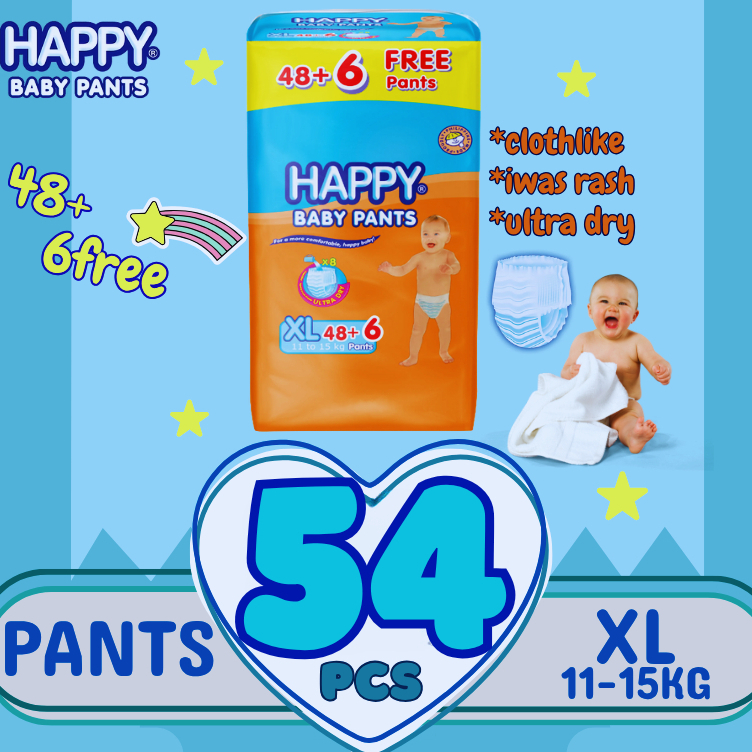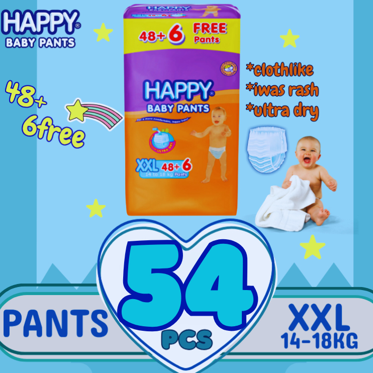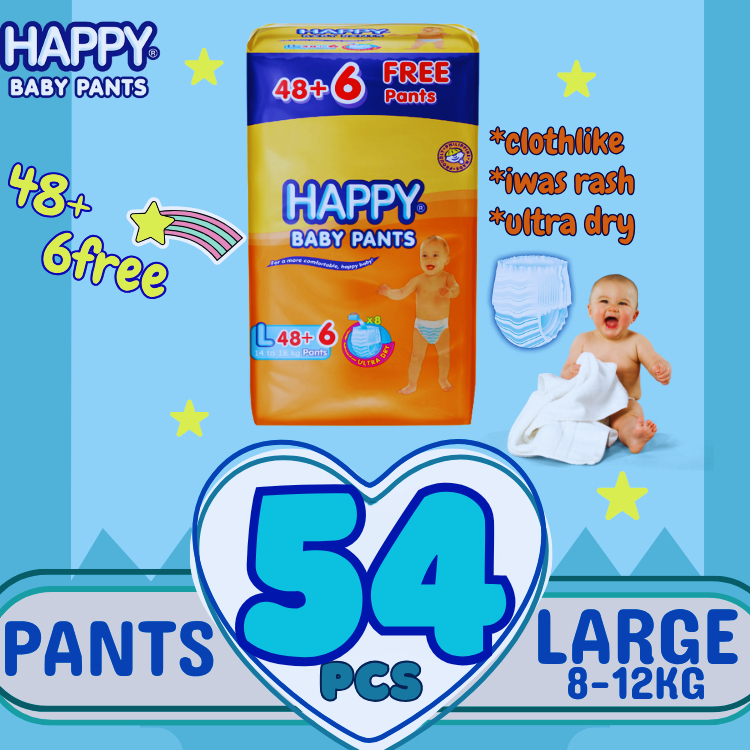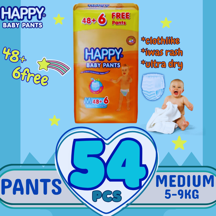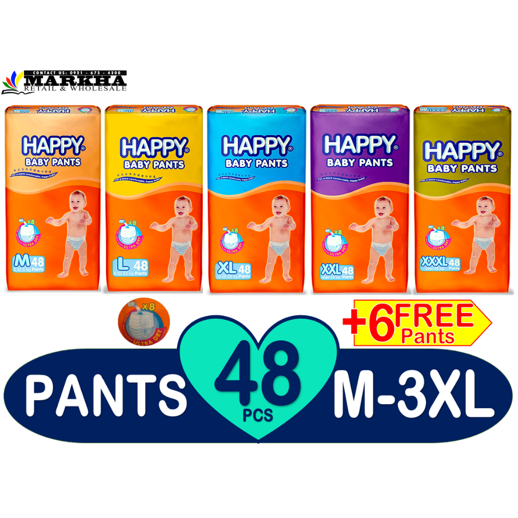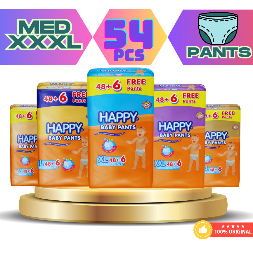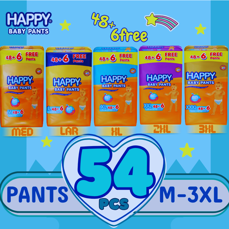 HAPPY BABY PANTS DIAPER x48+6free pads ( MEDIUM - XXXL)
