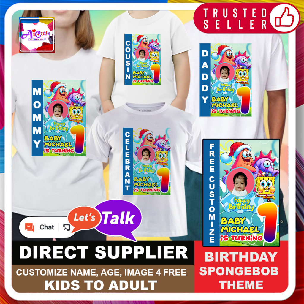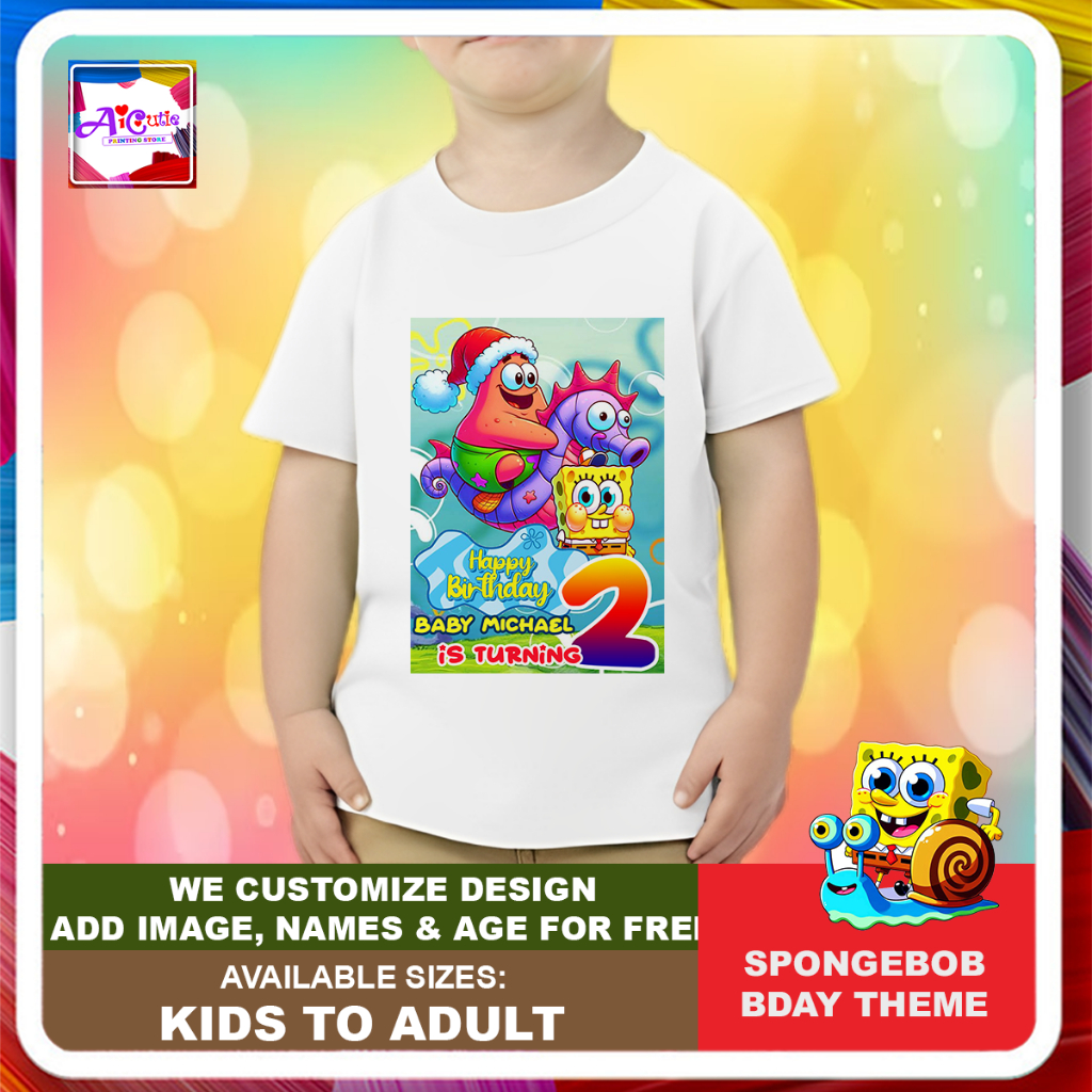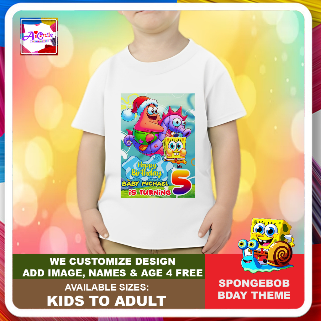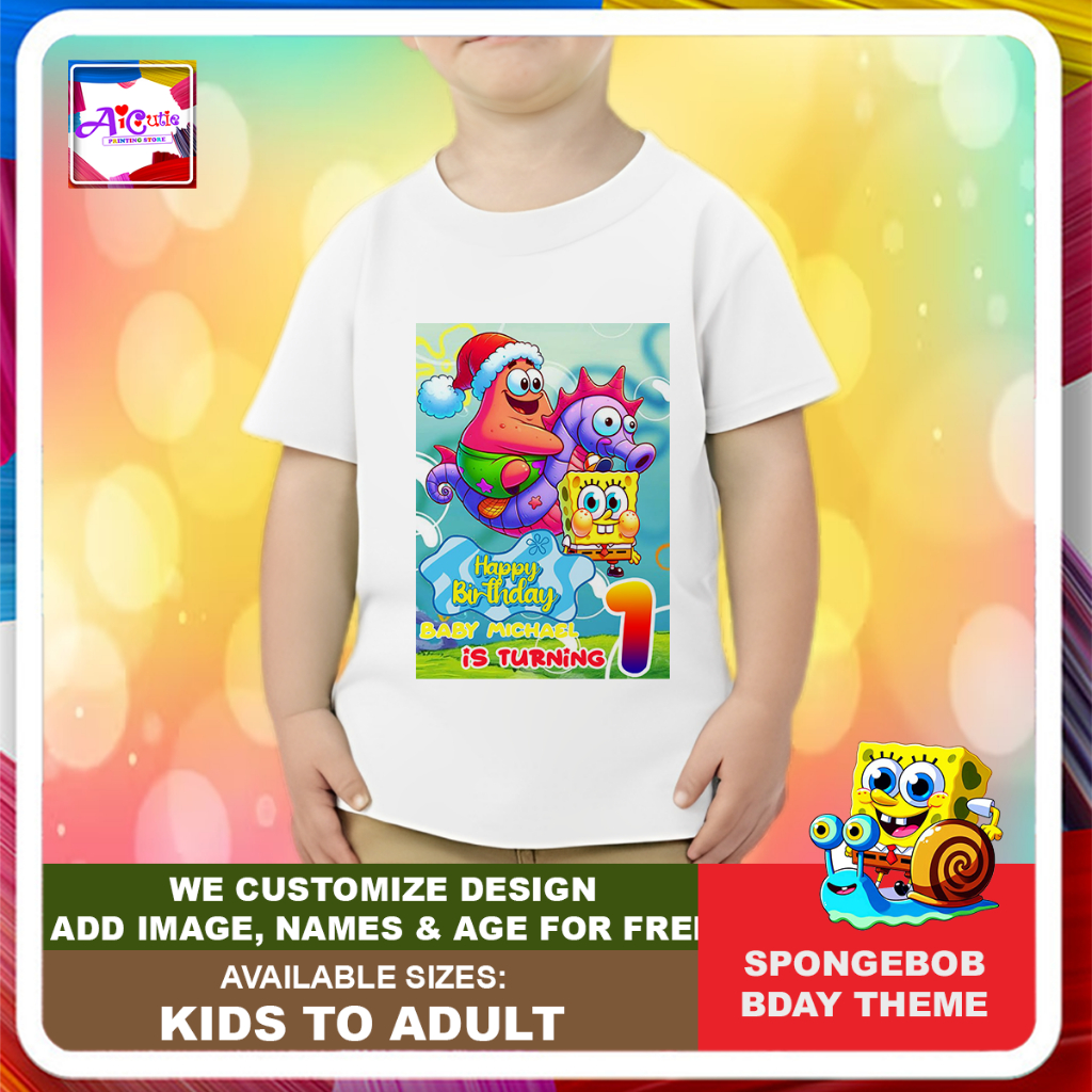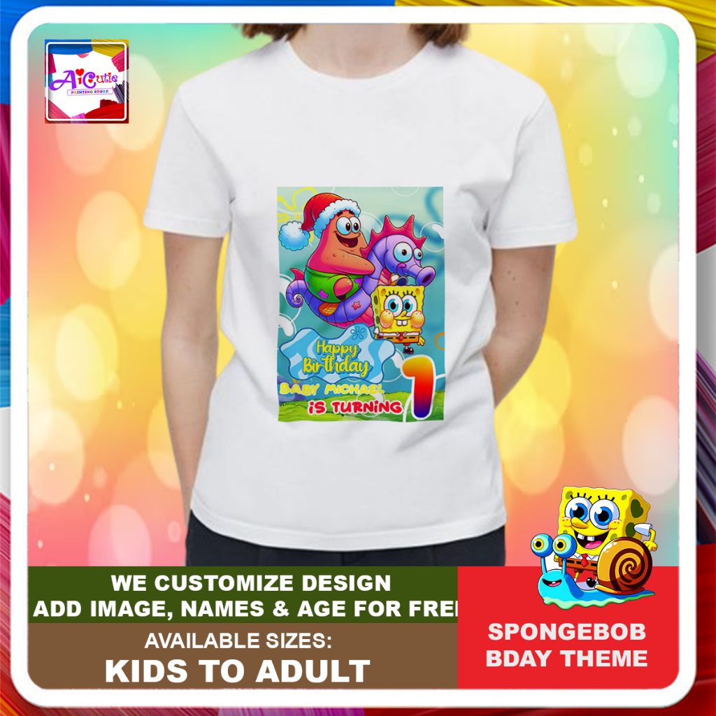 HAPPY BIRTHDAY SPONGEBOB THEME SHIRT DESIGN - AVAILABLE ALL SIZES FROM KIDS TO ADULT