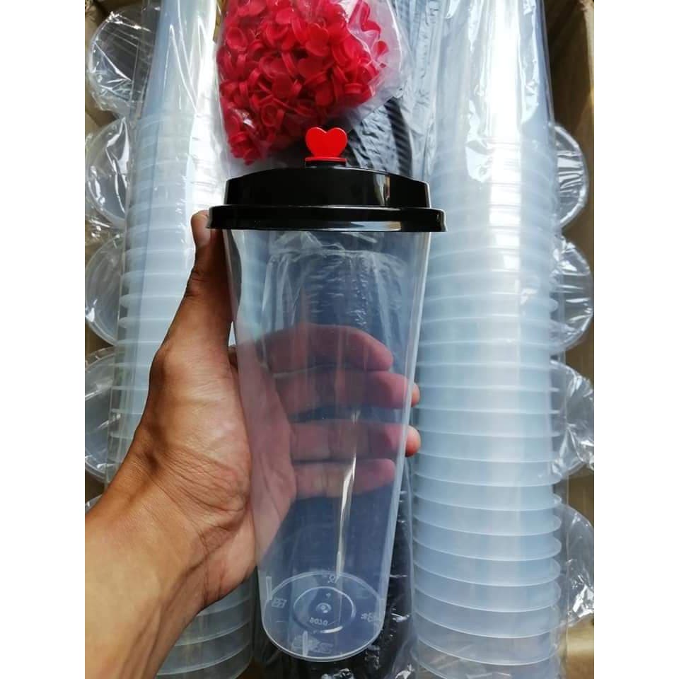 HARD SLIM CUP WITH BLACK LID HEART PLUG DESIGN 25'S