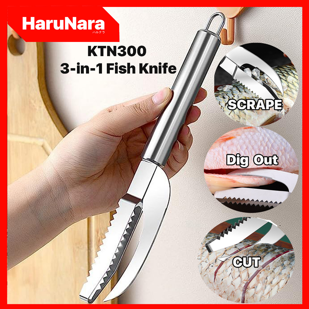 HARUNARA KTN300 3-in-1 Stainless Steel Fish Scaler Remover, Fish Scale Knife Cut Scrape Fish Peeler