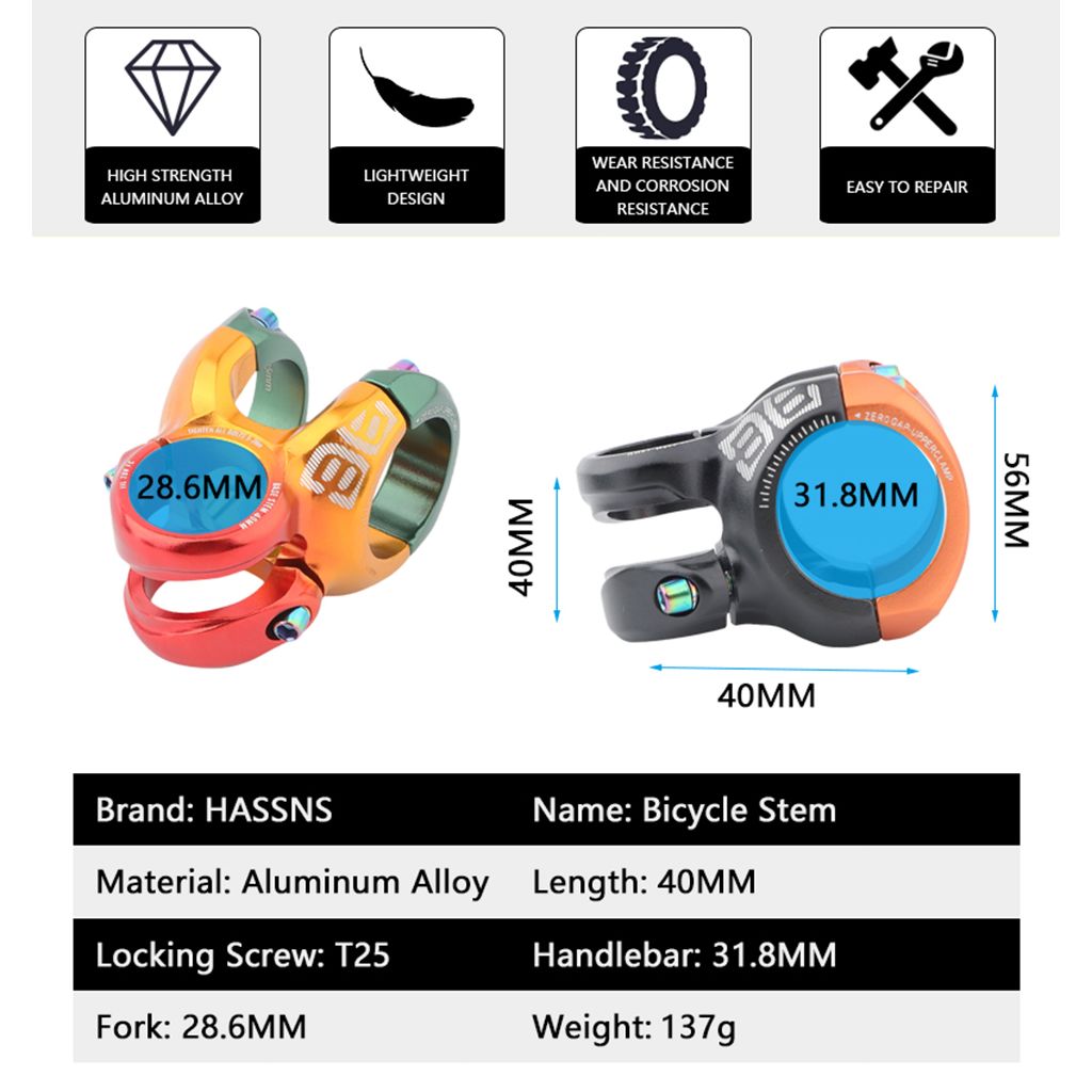 HASSNS DH-40 Bike Stem Handlebar Stem 31.8mm Aluminum Alloy Stem For Mountain Road Bike Cycling Part