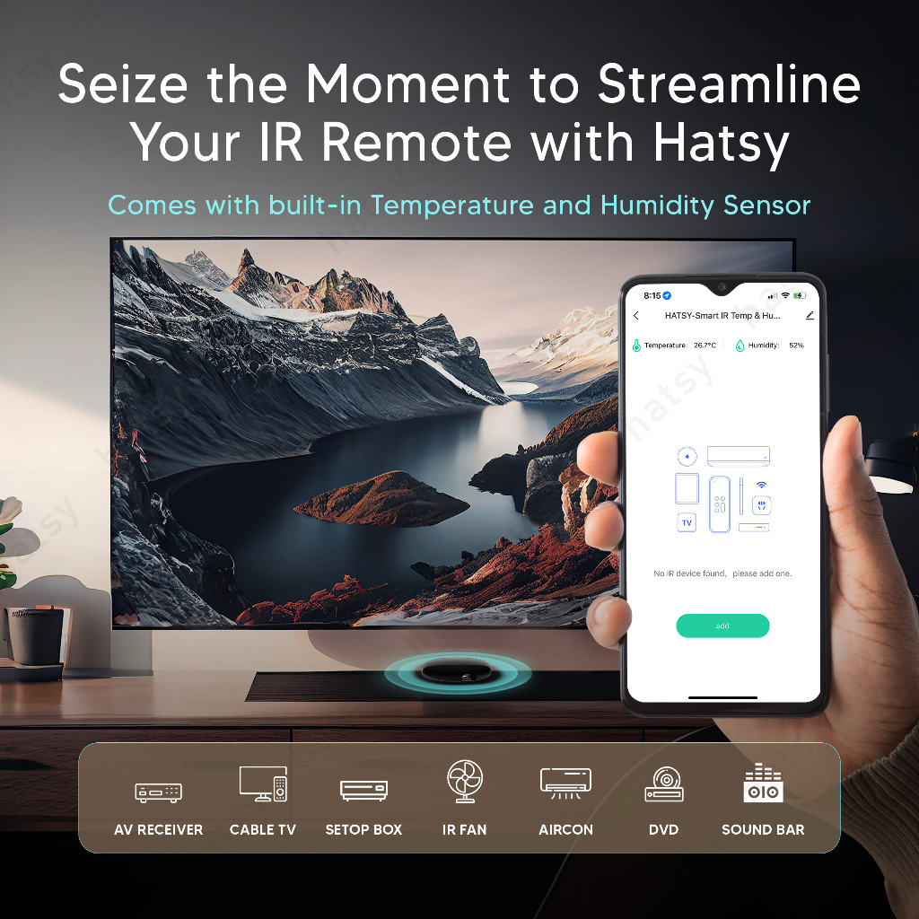 HATSY - SMART UNIVERSAL IR REMOTE, WITH BUILT IN TEMPERATURE & HUMIDITY SENSOR