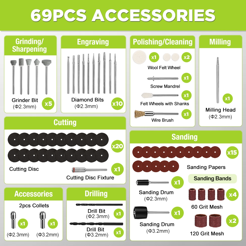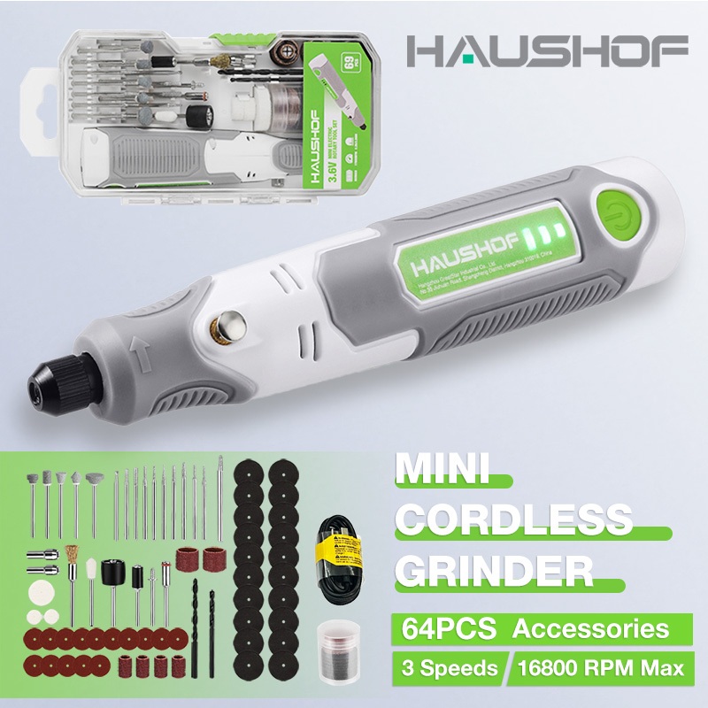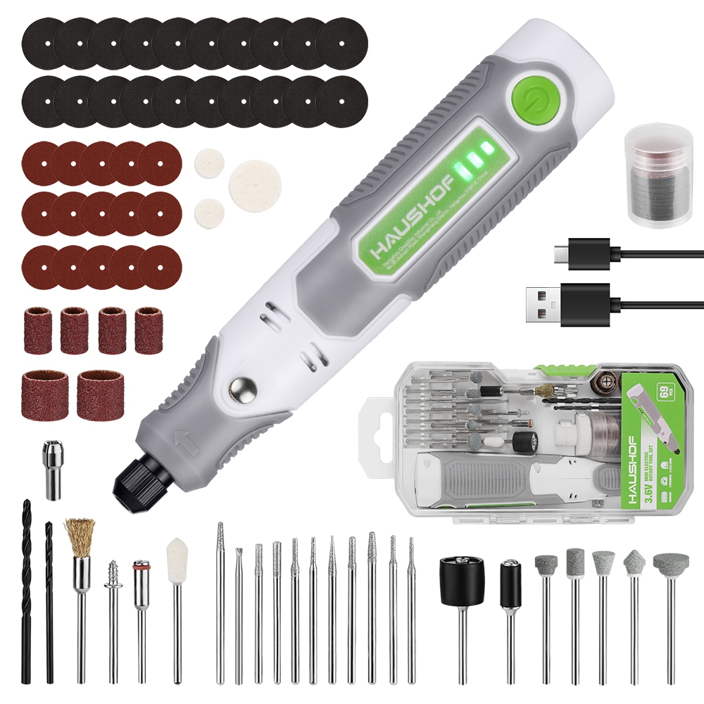 HAUSHOF 3.6V Cordless mini Drill Electric Rotary Tool With Charger 3-speed Mini Electric Grinder Machine Polishing Tools & 68 Accessories