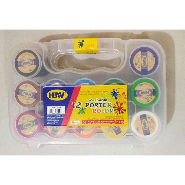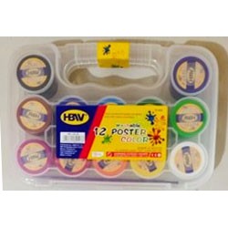 HBW Brand Washable 12 Poster Colors No. 19-1020 Fine Quality Poster Paint , Poster paint 12 colors