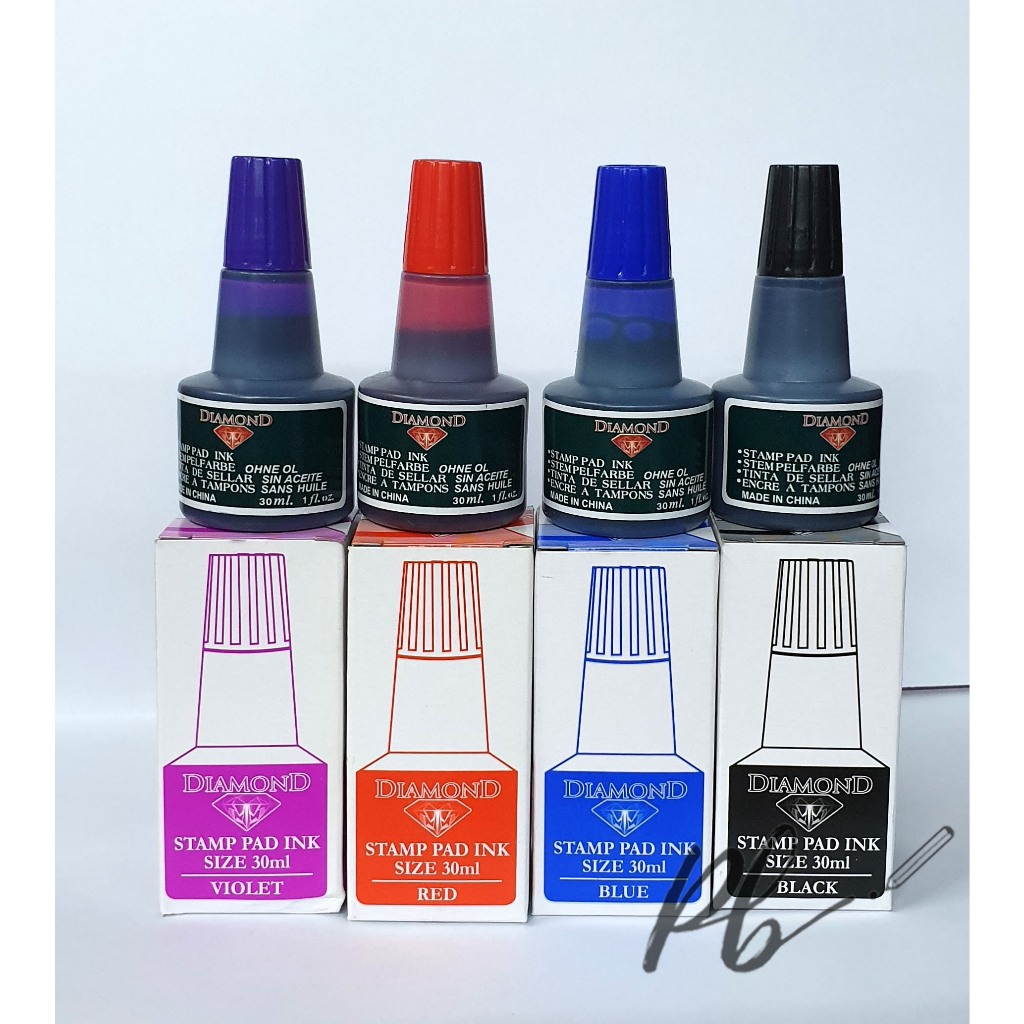 HBW or Diamond Stamp Pad Refill Ink 30ml in (Violet, Blue, Black, Green and Red) (Brand may vary)