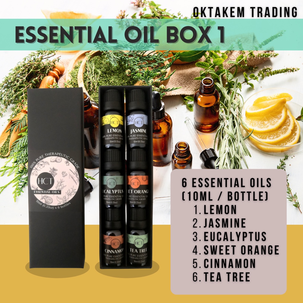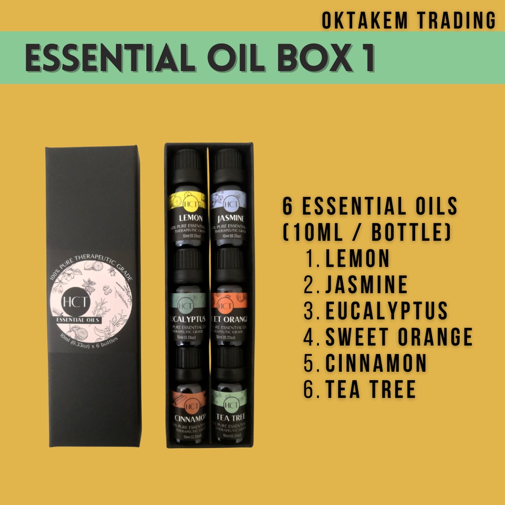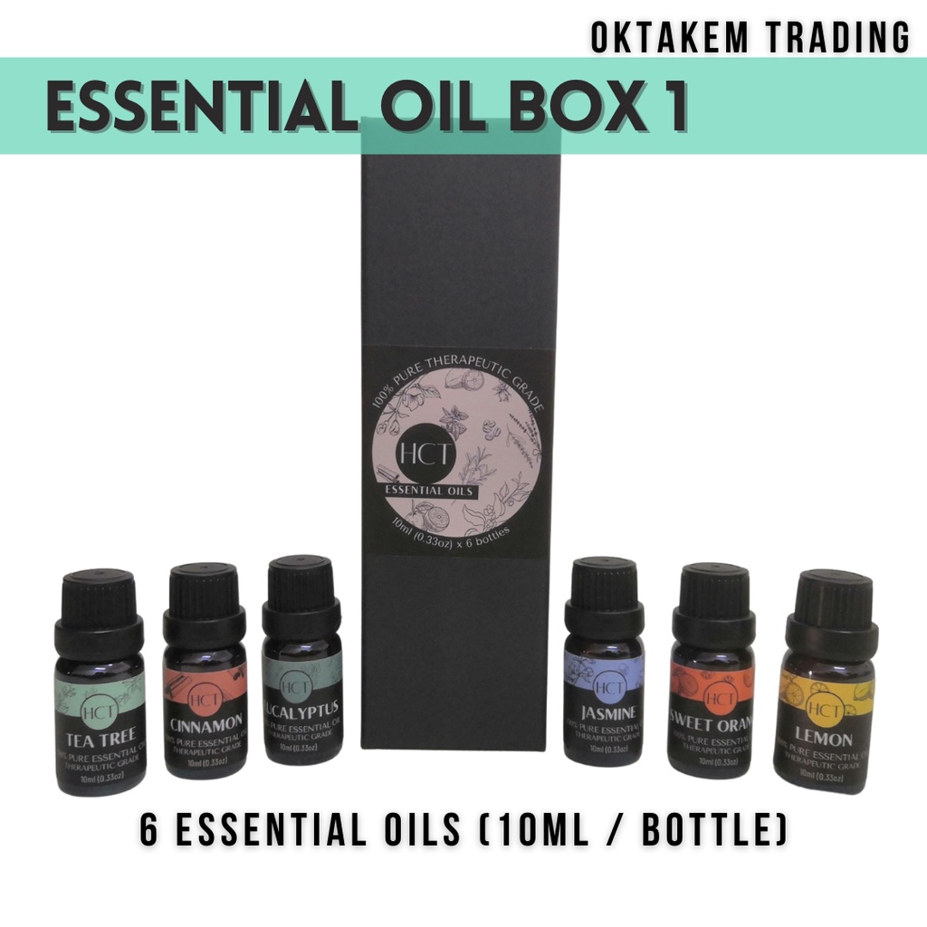 HCT Essential Oil Gift Box #1 Lemon, Jasmine, Eucalyptus, Sweet Orange, Cinnamon, Tea Tree Oktakem