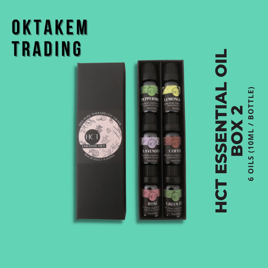 HCT Essential Oil Gift Box #2 Peppermint, Lemongrass, Lavender, Coffee, Rose, Green Tea Oktakem