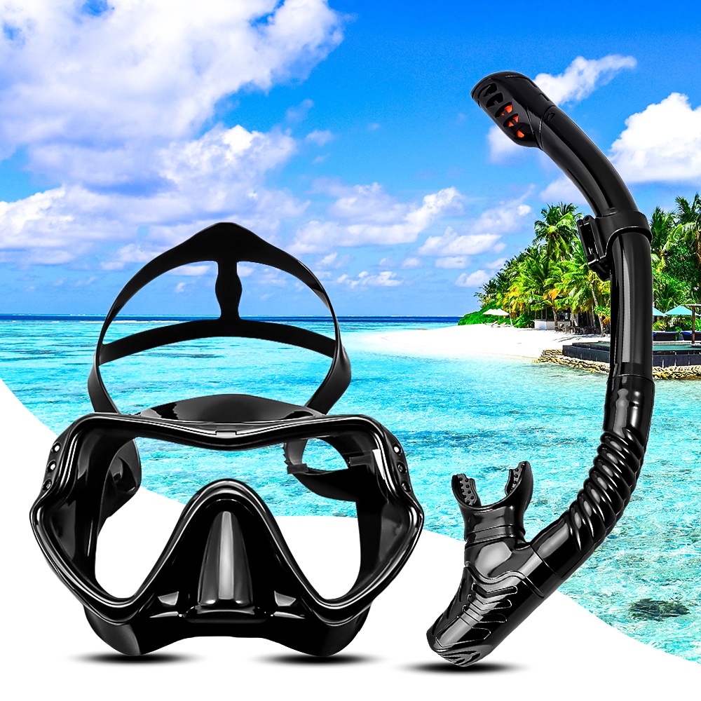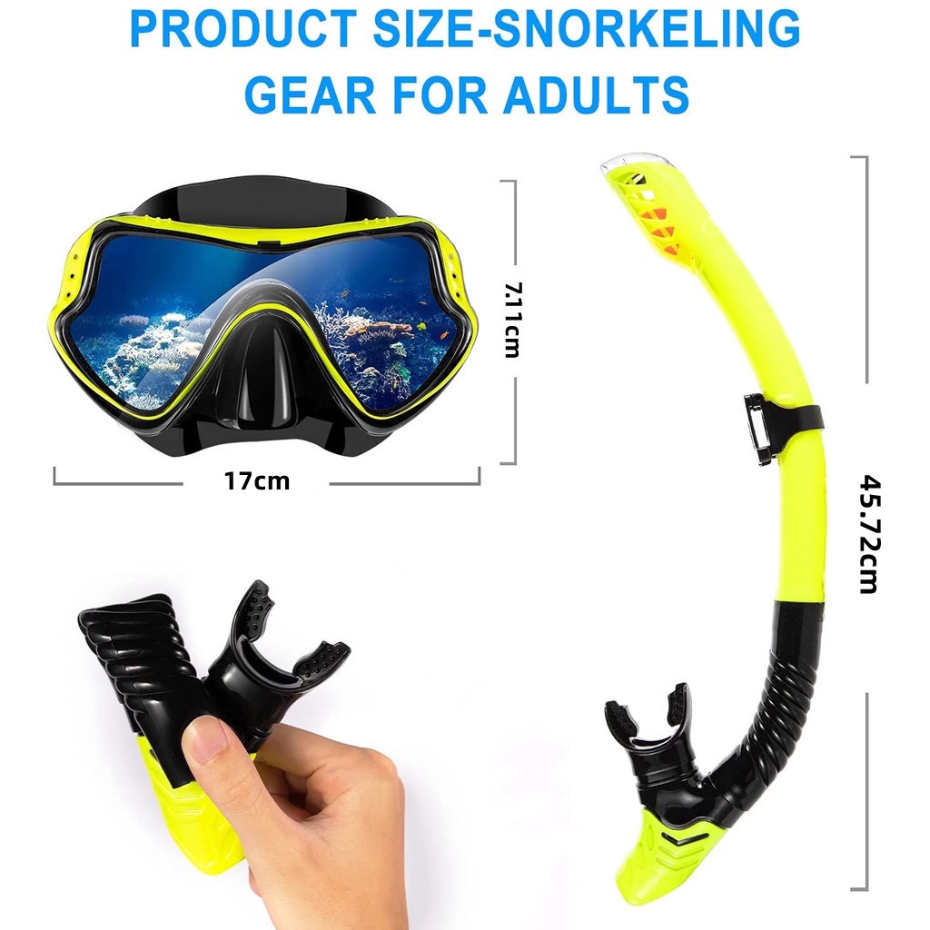 HD Anti-fog Diving Goggles Snorkel Set Tempered Glass Diving Goggles Snorkeling for Swimming Adult