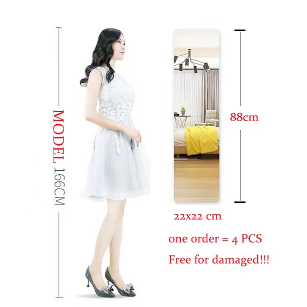 HD Full Length Home Mirror Square Glass Mirror Wall Decor Self-Adhesive Decoration for Living Room