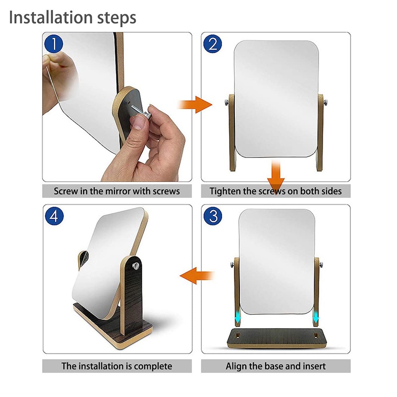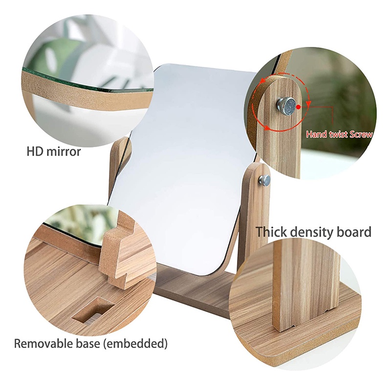 HD Wooden Mirror 360 Degree Portable Adjustable Table Desk Mirror Stand Bathroom Living Room