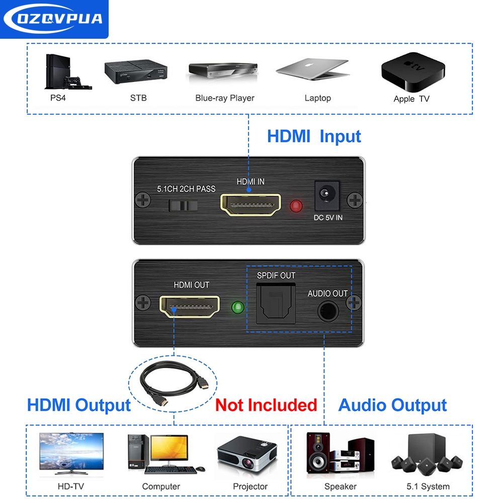 HDMI Audio Extractor HDMI to Optical TOSLINK SPDIF with Audio Out HDMI to HDMI Audio Converter for Fire TV, DVD