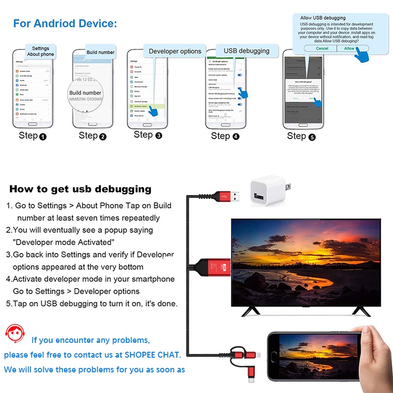 HDMI Cable Android phone to tv, Multiport Adapter to HDMI Cable Mirroring Cellphone Screen to TV, Projector, Monitor's,1080P Resolution