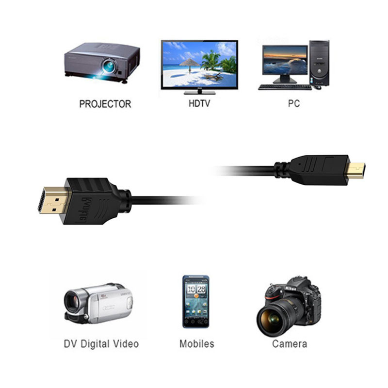 HDMI Cable Cord Wire (Action Camera to HDTV) 1080p for GoPro Hero 3 /3+ /4 Black/Silver 5 /6 /7 Black Accessories
