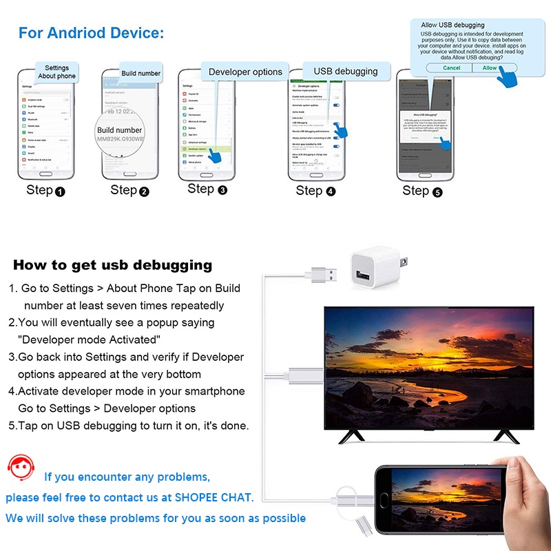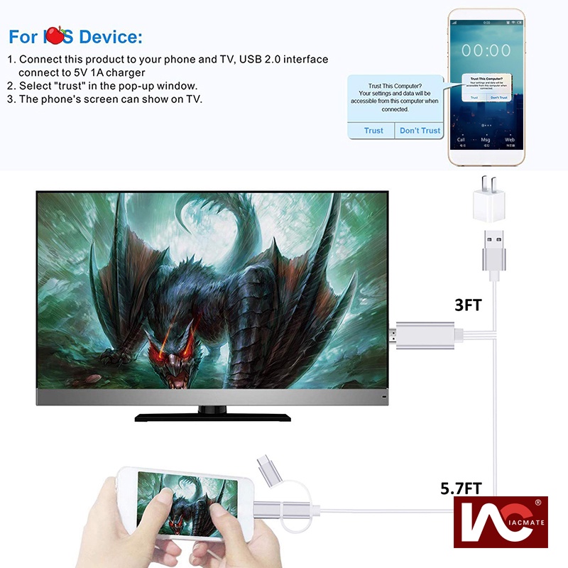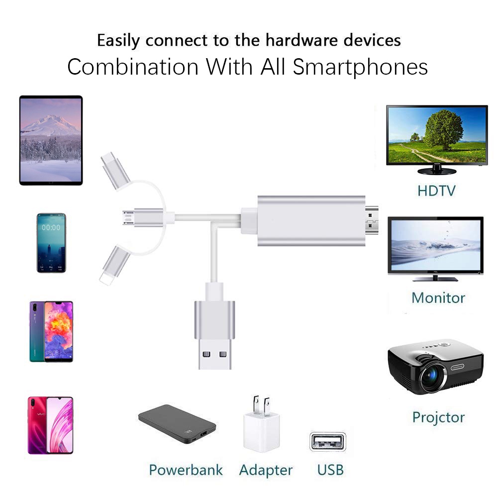 HDMI Cable Phone to TV, 3 in 1 Multiport Adapter to HDMI Cable Mirroring Cellphone Screen to TV, Projector, Monitor's,1080P Resolution