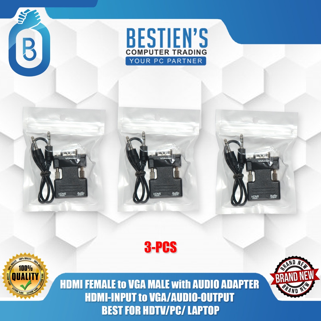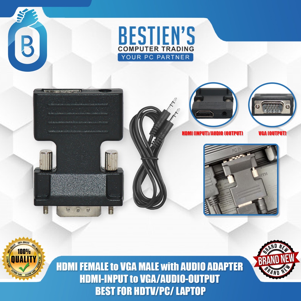 HDMI FEMALE to VGA MALE with AUDIO ADAPTER, HDMI-INPUT to VGA/AUDIO-OUTPUT, BEST FOR HDTV/PC/ LAPTOP