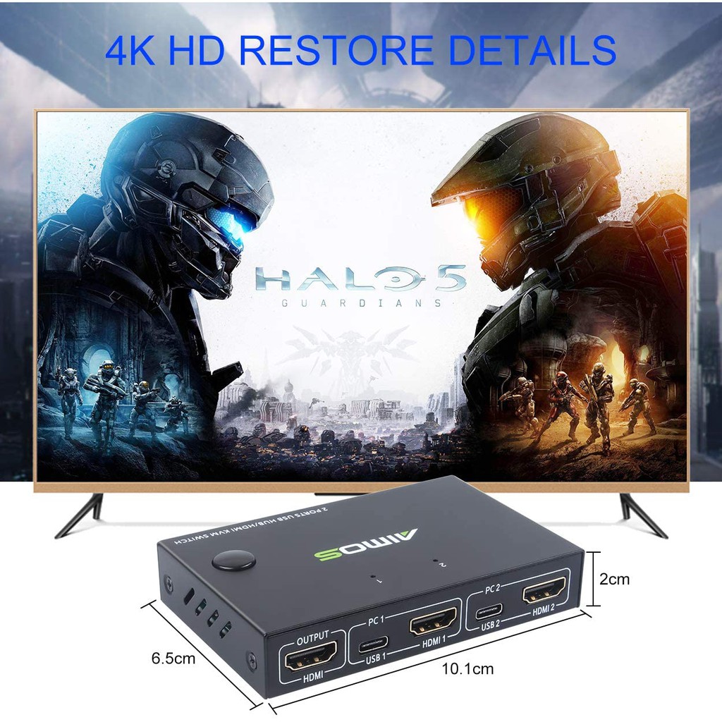HDMI KVM Switch 2 Port 4K USB Switch KVM VGA Switcher HDMI USB Hub KVM Switch Box For Sharing Printer Keyboard Mouse