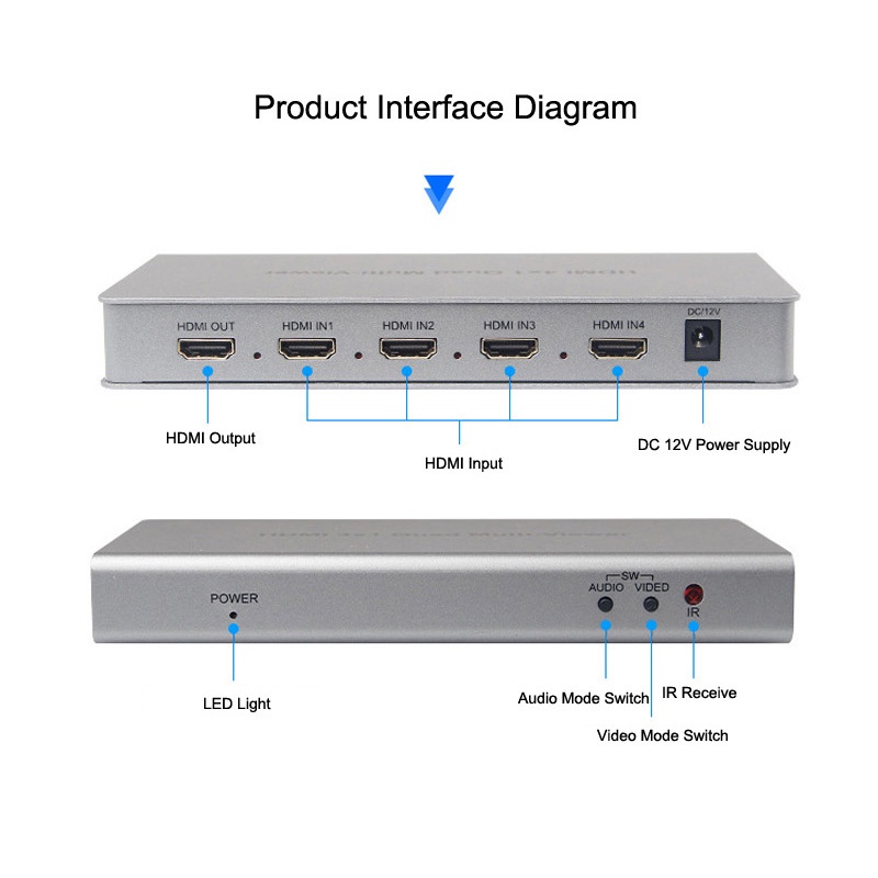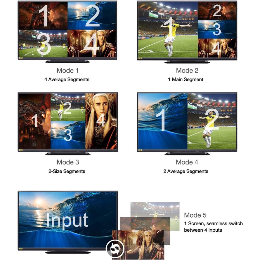 HDMI Quad Multi-viewer 4x1 HDMI Quad Screen Segmentation Splitter 4 In 1 Out video Multiviewer Seamless Switcher 5 Viewing Modes