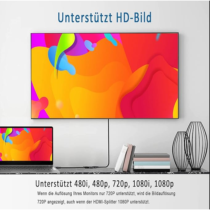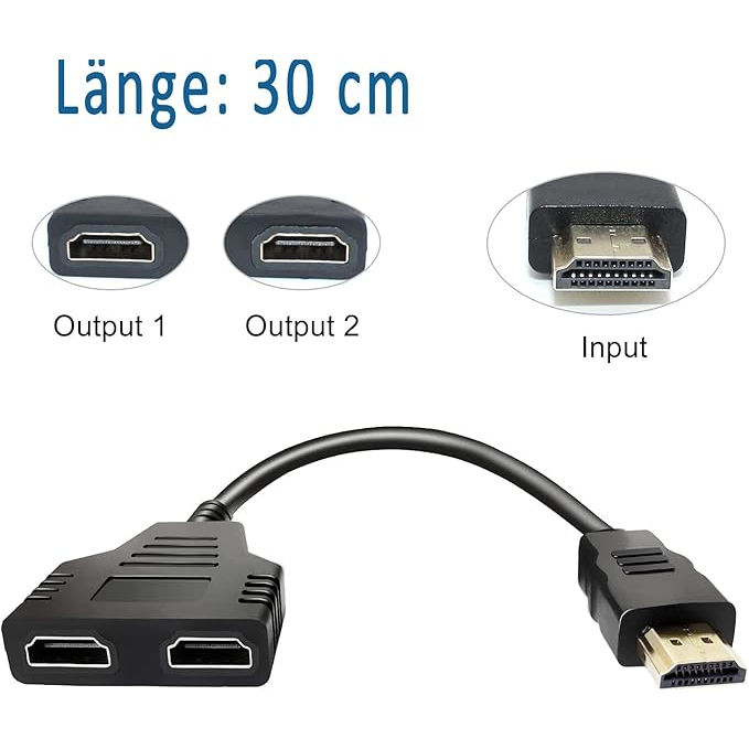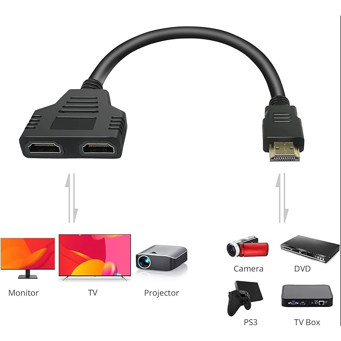 HDMI Splitter Male to Female Cable Adapter Converter HDTV 1 Input 2 Output