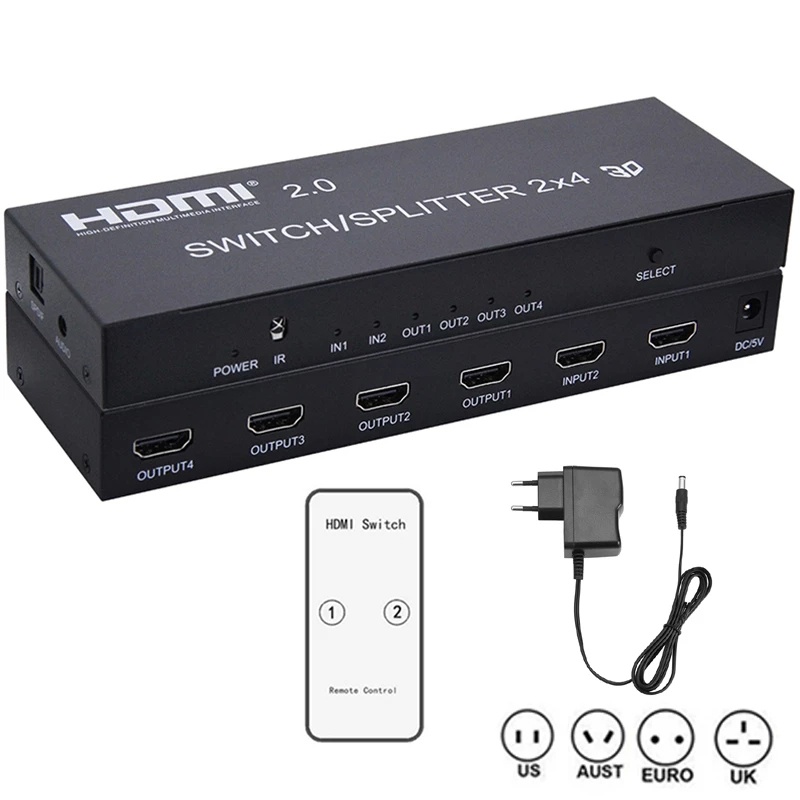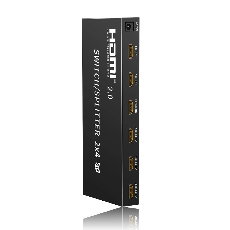 HDMI Switch 2 In 4 Out Ethernet Fast Desktop Network Switching Hub 6Port Audio Extractor Remote HDMI Splitter Jack Toslink SPDIF
