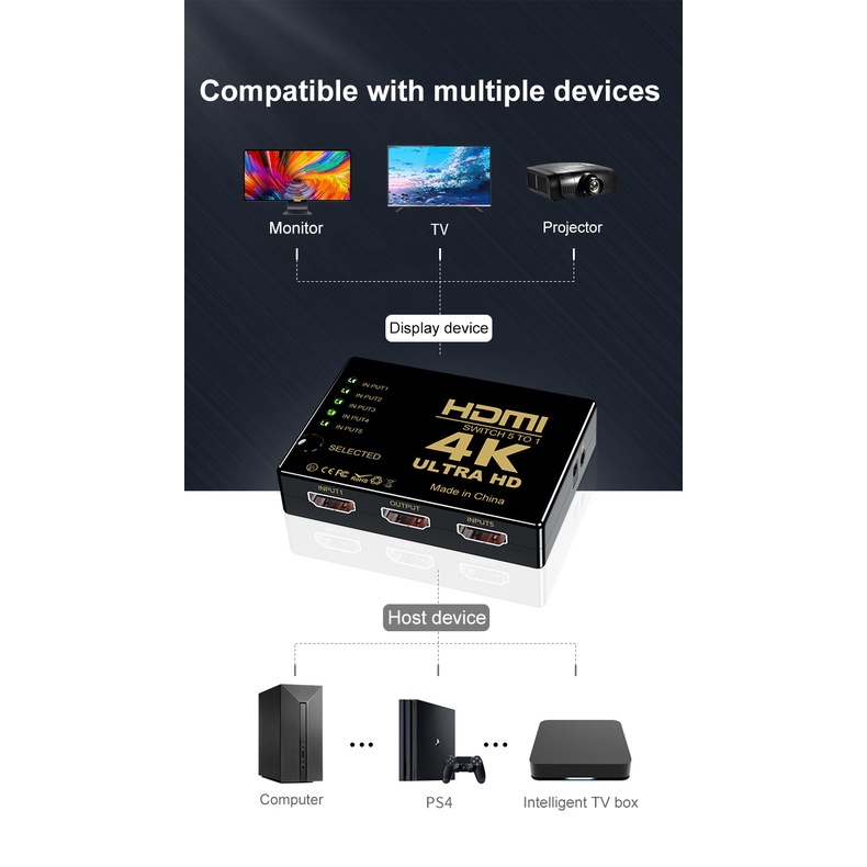 HDMI Switch 5 In 1 Out HDMI Splitter 5x1 with IR Remote Control Supports 4K 3D HD1080P HDMI Switcher For Game Console HDTV Monitor Blu-Ray Player