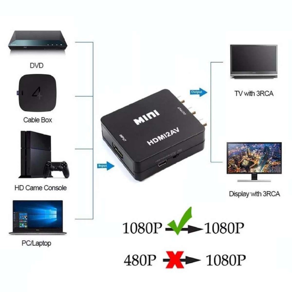 HDMI TO AV Adapter Converter Mini HD Video Converter Box HDMI to RCA AV/CVSB L/R Video 1080P HDMI2AV