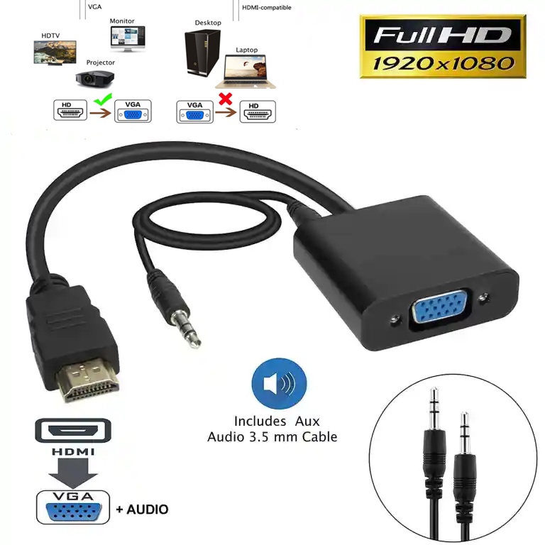 HDMI To VGA Converter with audio Cable For PC TV Laptop Projector ps4