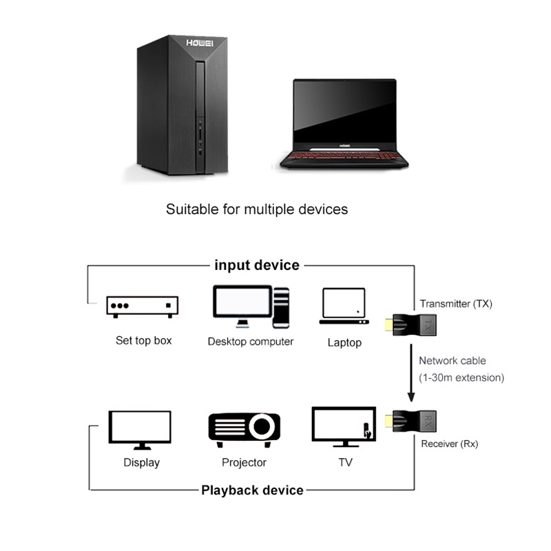HDMI-compatible Extender 4k RJ45 Ports LAN Network HDMI-compatible Extension Up To 30m Over CAT5e / 6 hotUTP LAN Ethernet Cable