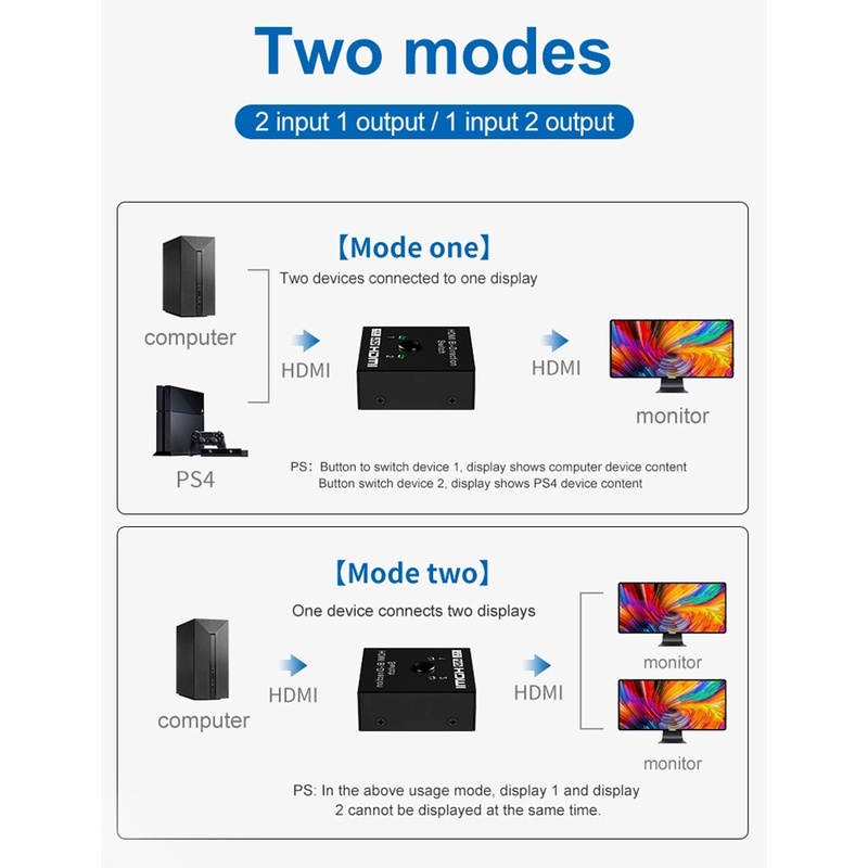 HDTV 2 Ports 4K 1080P HDMI 2.0 Bi-Directional 2in1 Display Video Audio HDMI Switch Splitter for PC Laptop Switch PS4 Xbox
