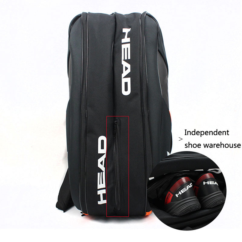 HEAD 6 Pieces Tennis Rackets Bag Hard Shell Sports Bag Large Capacity 9 Badminton Racquets Backpack Men Women Tenis Squash Padel