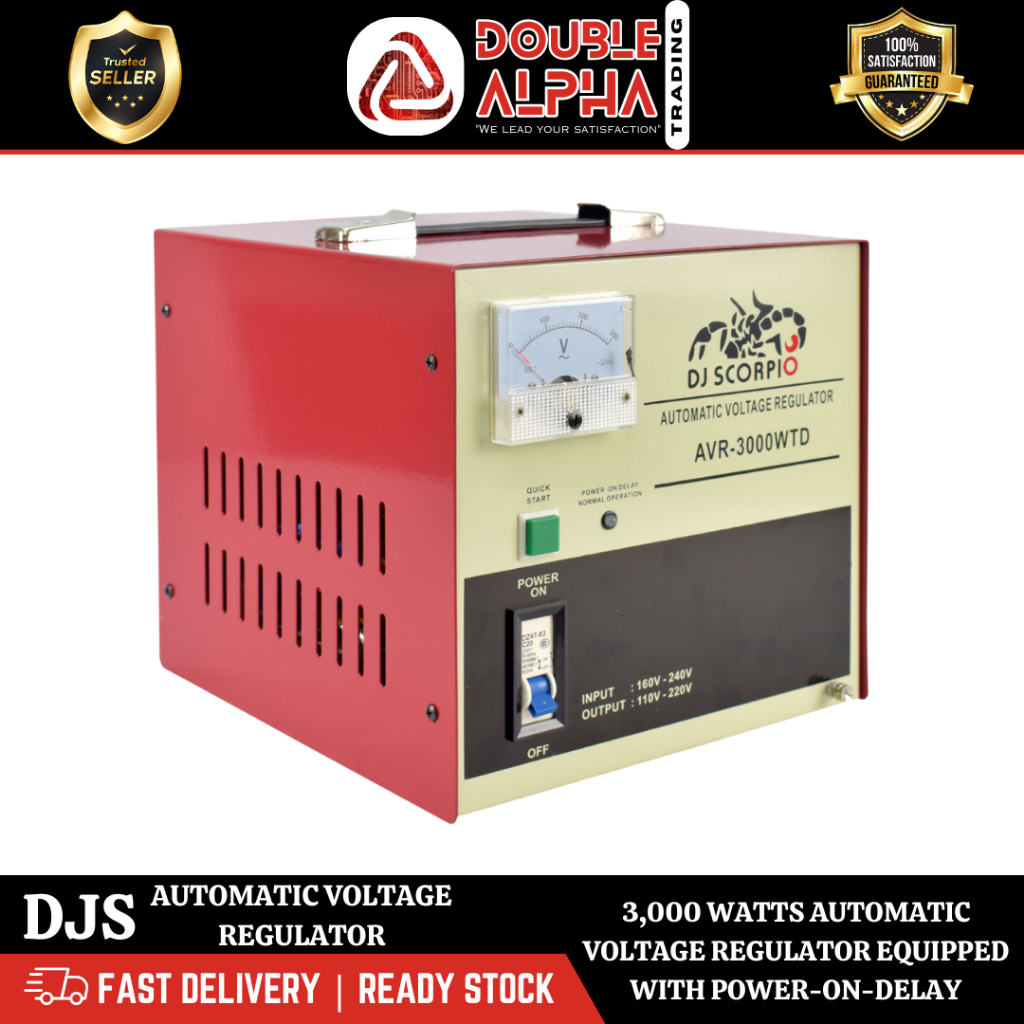 HEAVY DUTY AUTOMATIC VOLTAGE REGULATOR EQUIPPED WITH POWER-ON-DELAY DJ SCORPIO 3,000 WATTS AVR