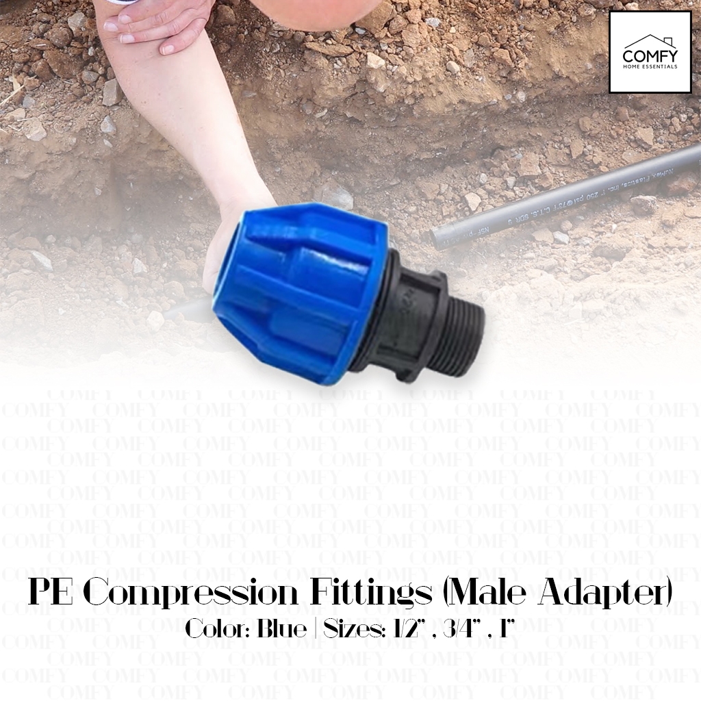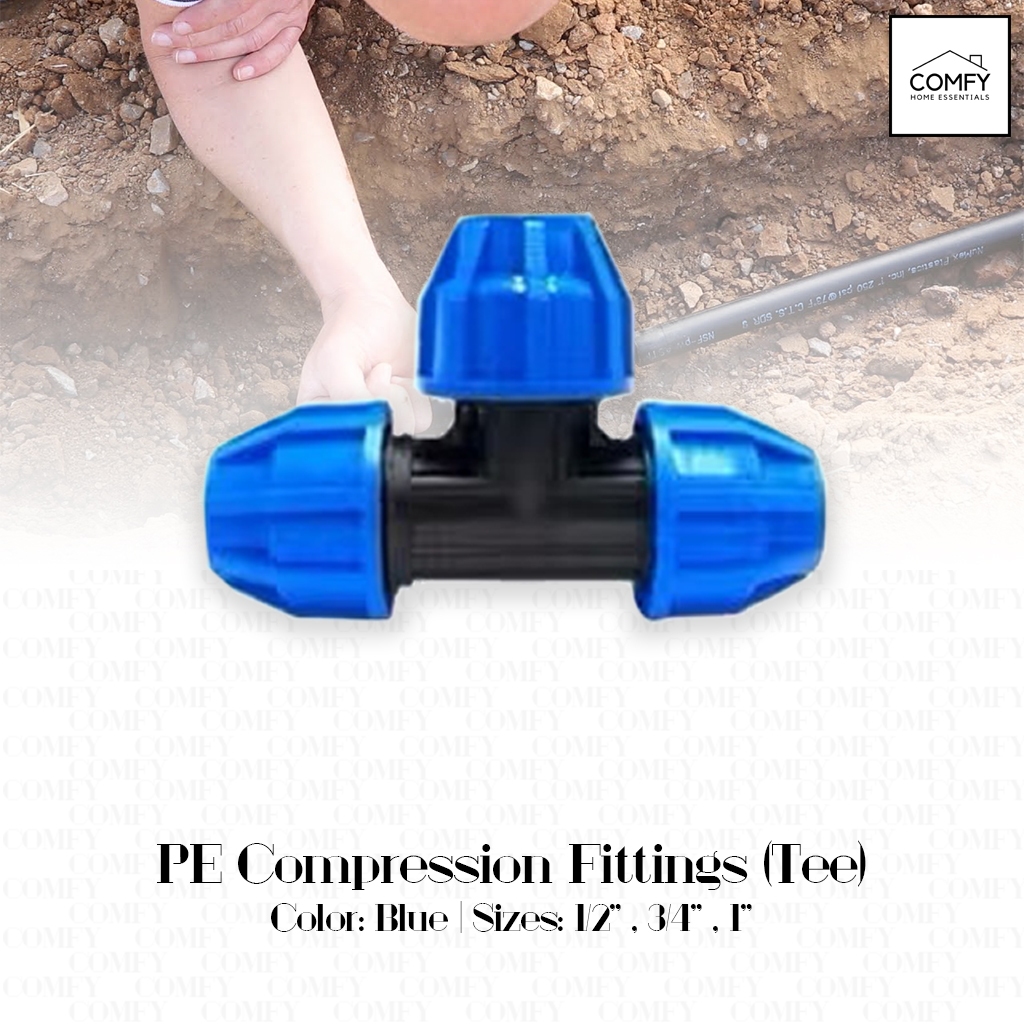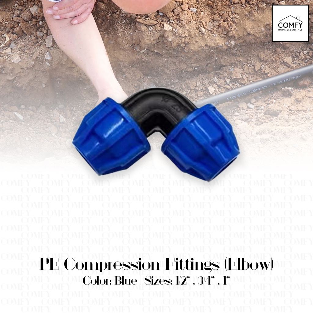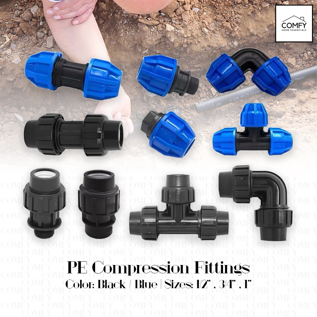 HEAVY DUTY Black / Blue Plastic PE Compression Pipe Fittings Coupling Elbow Tee Adapter 1/2" 3/4" 1"
