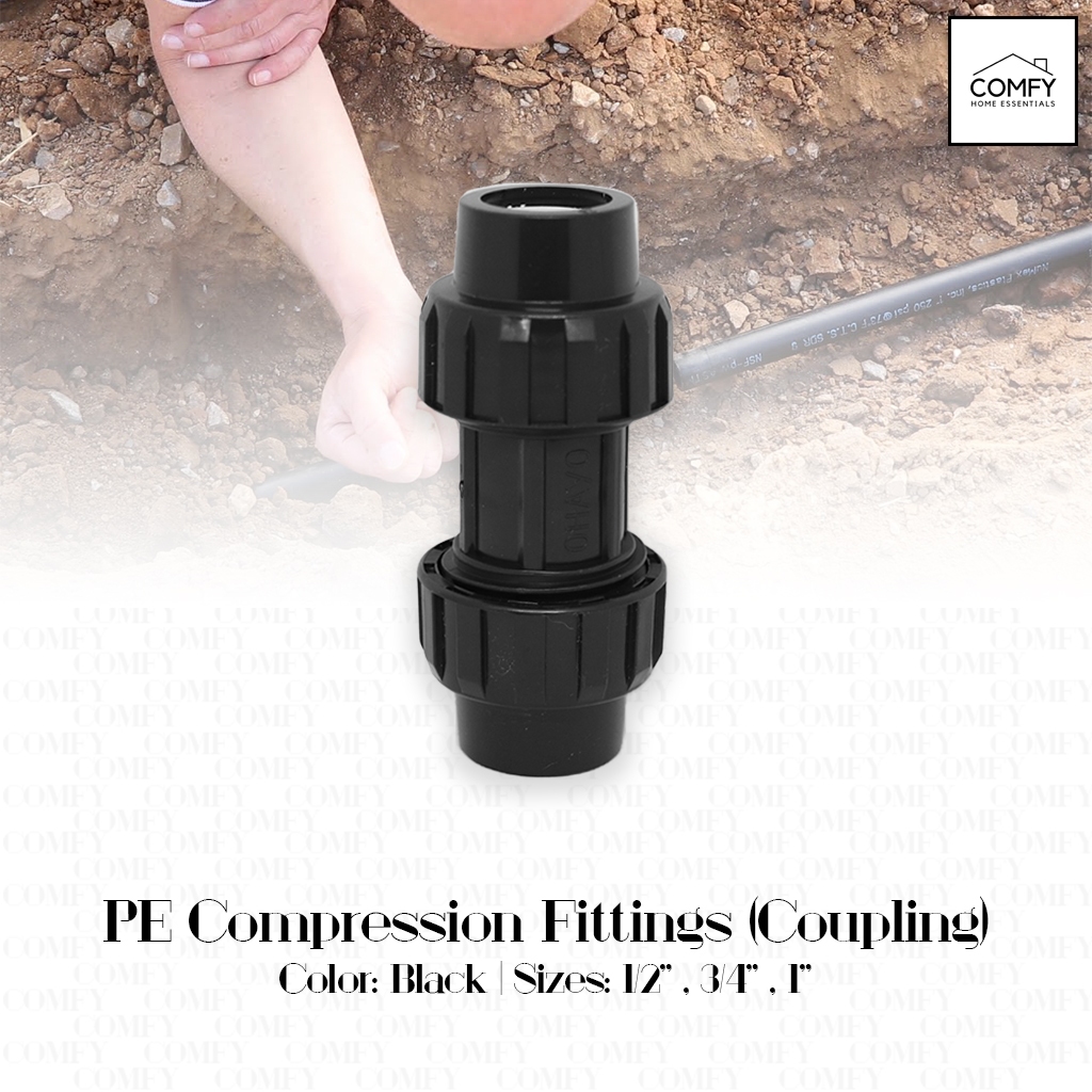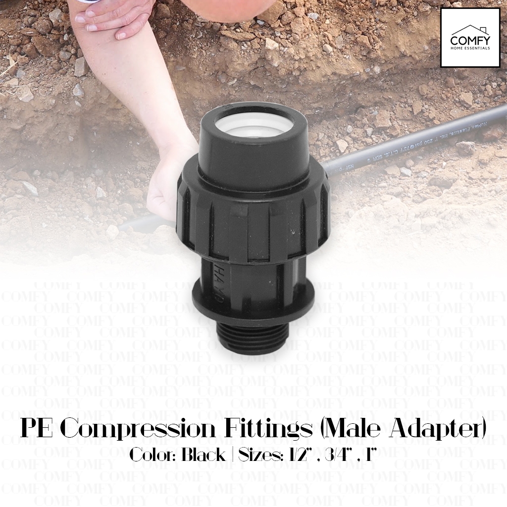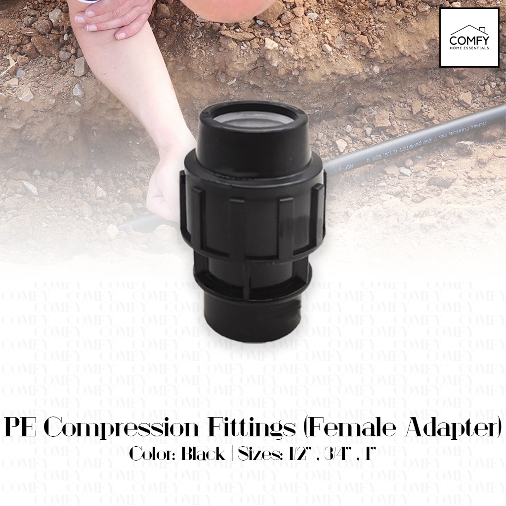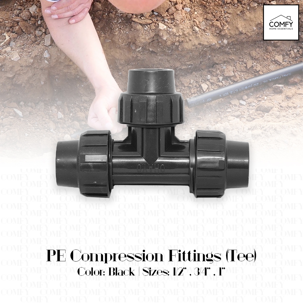 HEAVY DUTY Black / Blue Plastic PE Compression Pipe Fittings Coupling Elbow Tee Adapter 1/2" 3/4" 1"