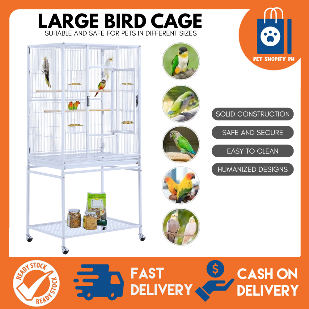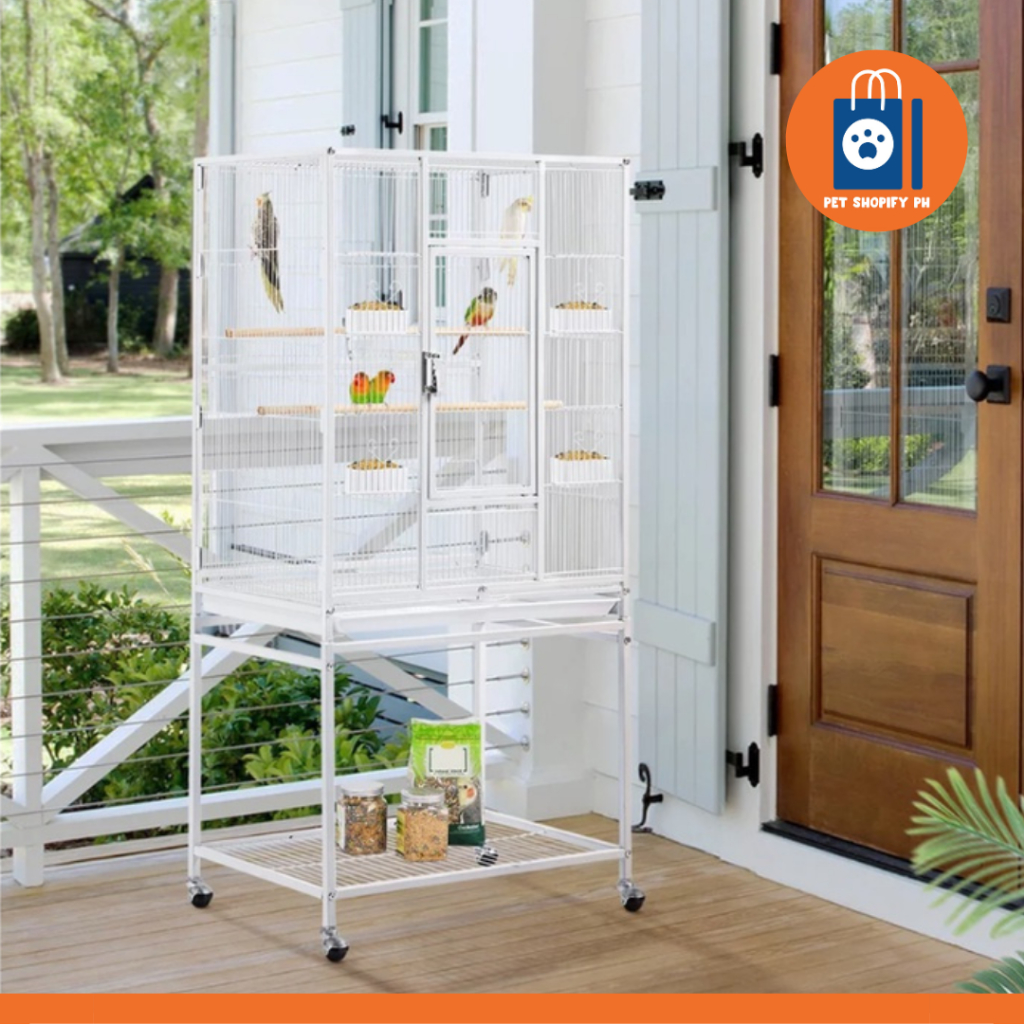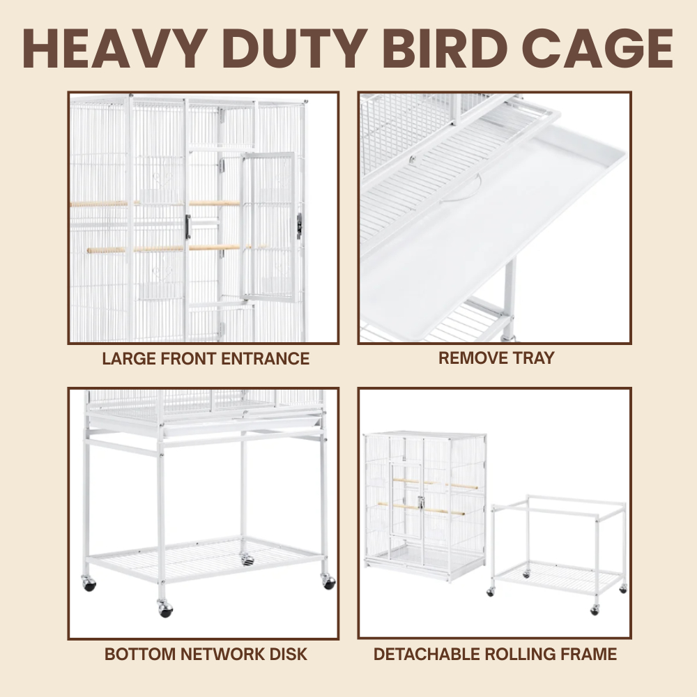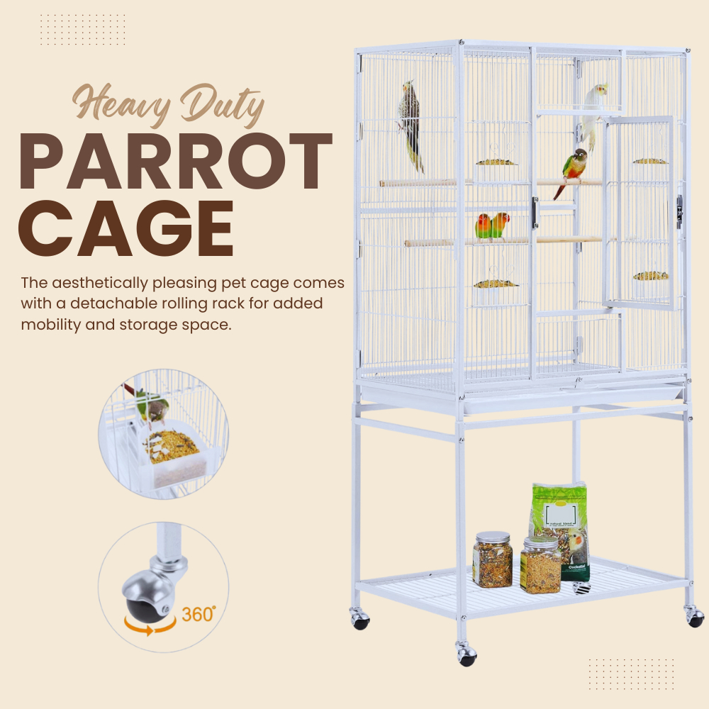 HEAVY DUTY PARROT CAGE WITH STAND - LARGE ROLLING METAL BIRD CAGE 5006A