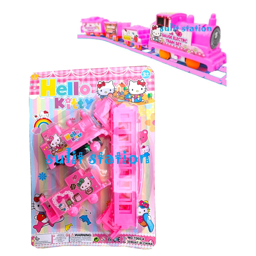 HELLO KITTY BATTERY OPERATED MINI TOY TRAIN with TRACK SET TOYS FIGURE CAKE TOPPER