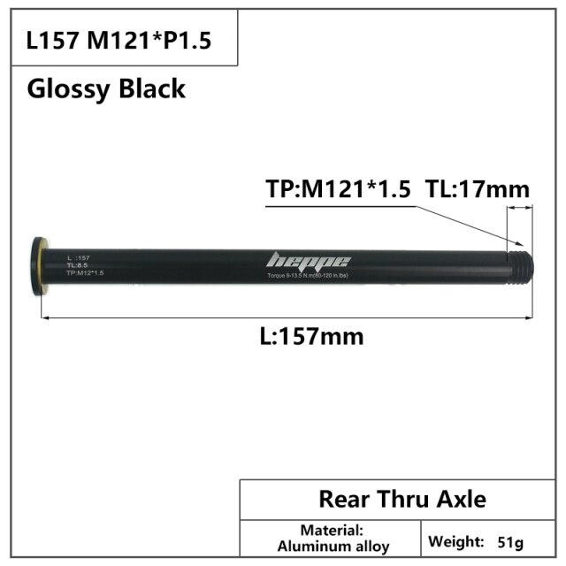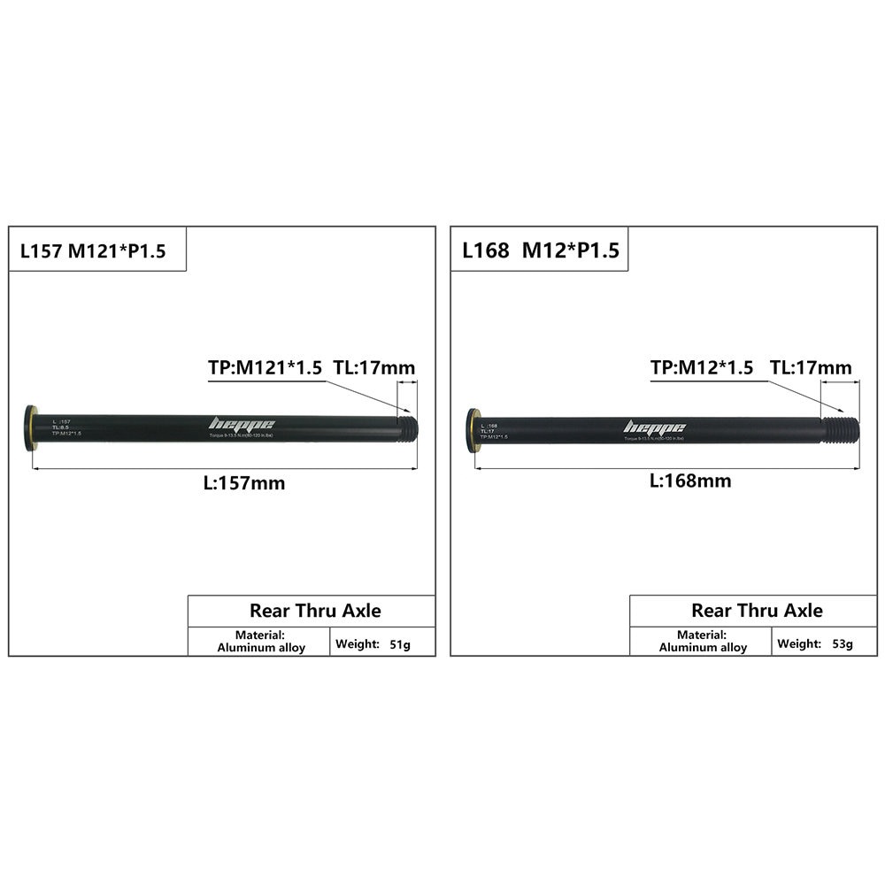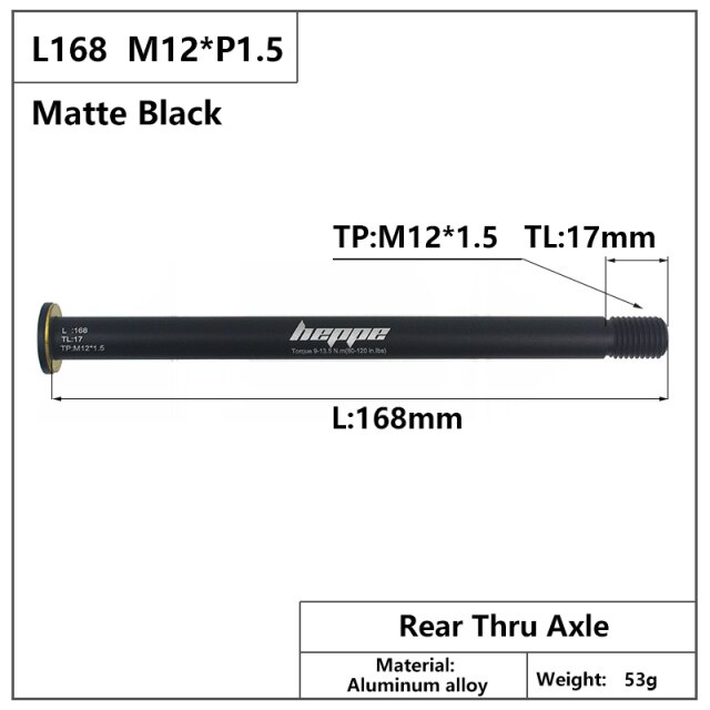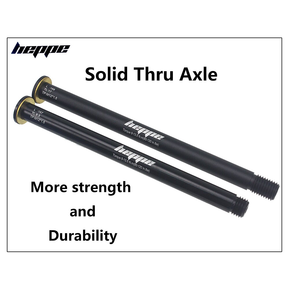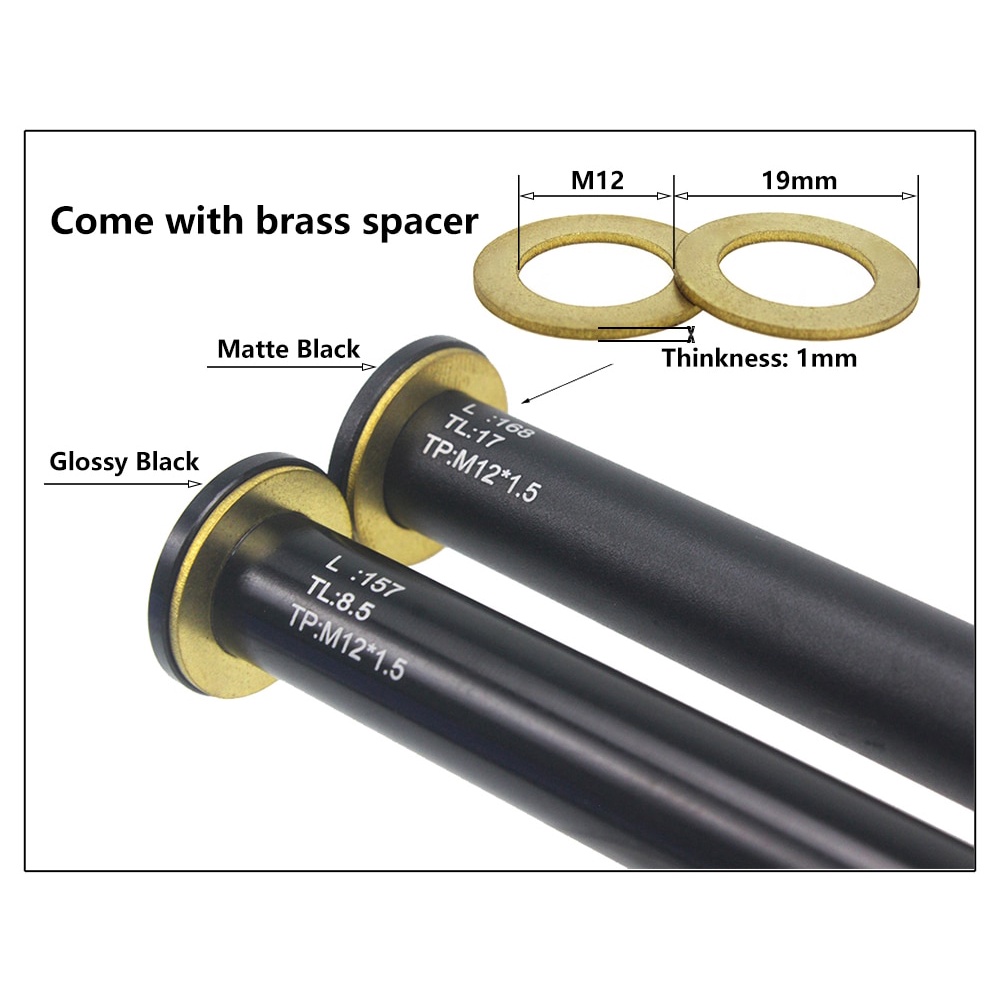 HEPPE Bike Thru Axle Rear Hub Solid Thru Axle Shaft Skewers 168mm 157mm Thread Pitch P1.5 w/ Brass Spacer for MTB Road Bike DH