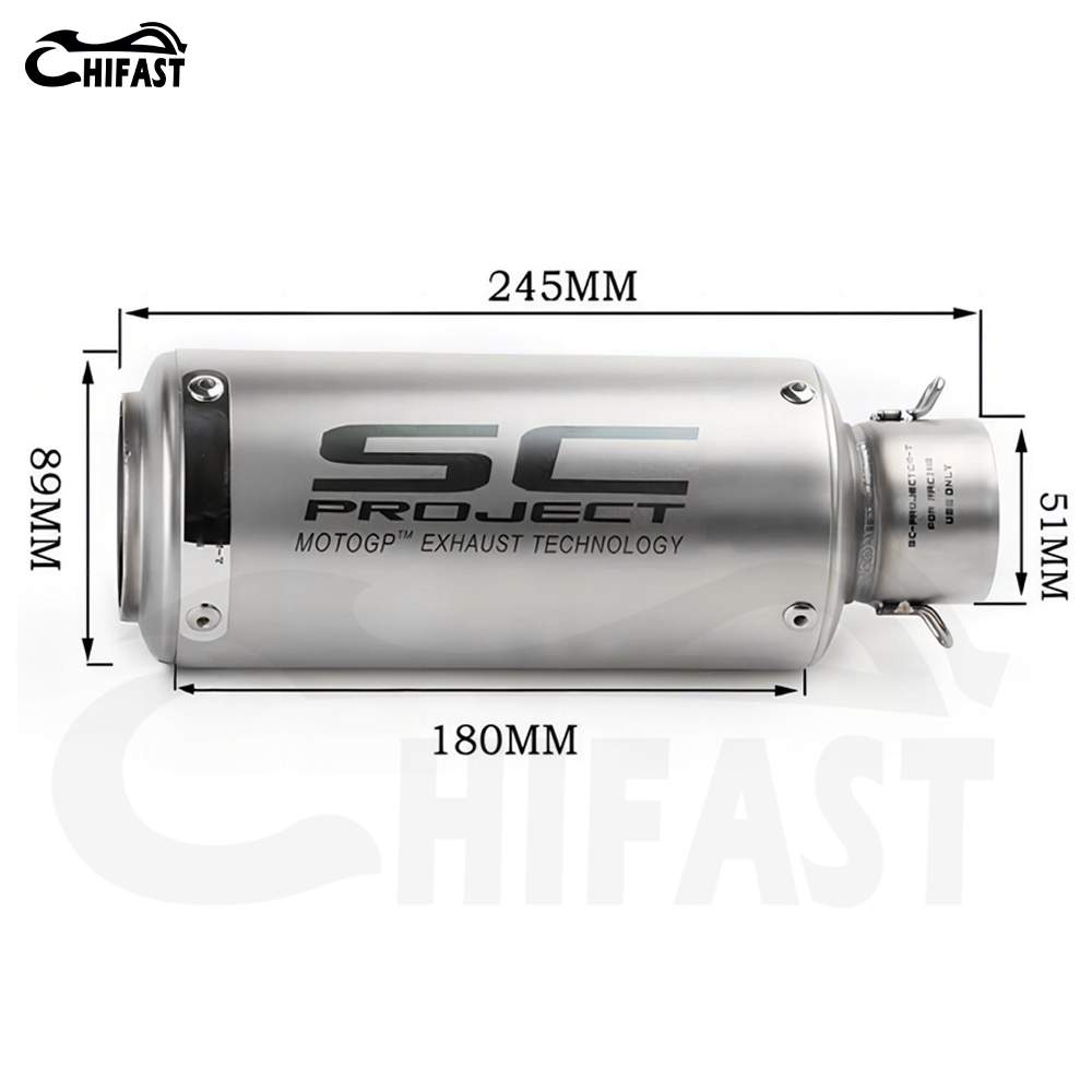 HIFAST SC Exhaust Pipe Universal 51mm Motorcycle Exhaust Pipe Locomotives Professional Stainless Steel Tailpipe Tail Pipe Stainless